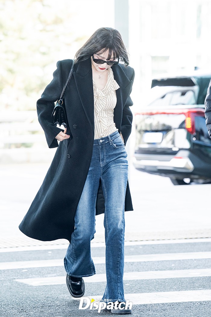 조이은 데님 팬츠에 러플 장식 블라우스, 롱코트를 매치했다. 사랑스런 미소로 팬들에게 인사를 건넸다.