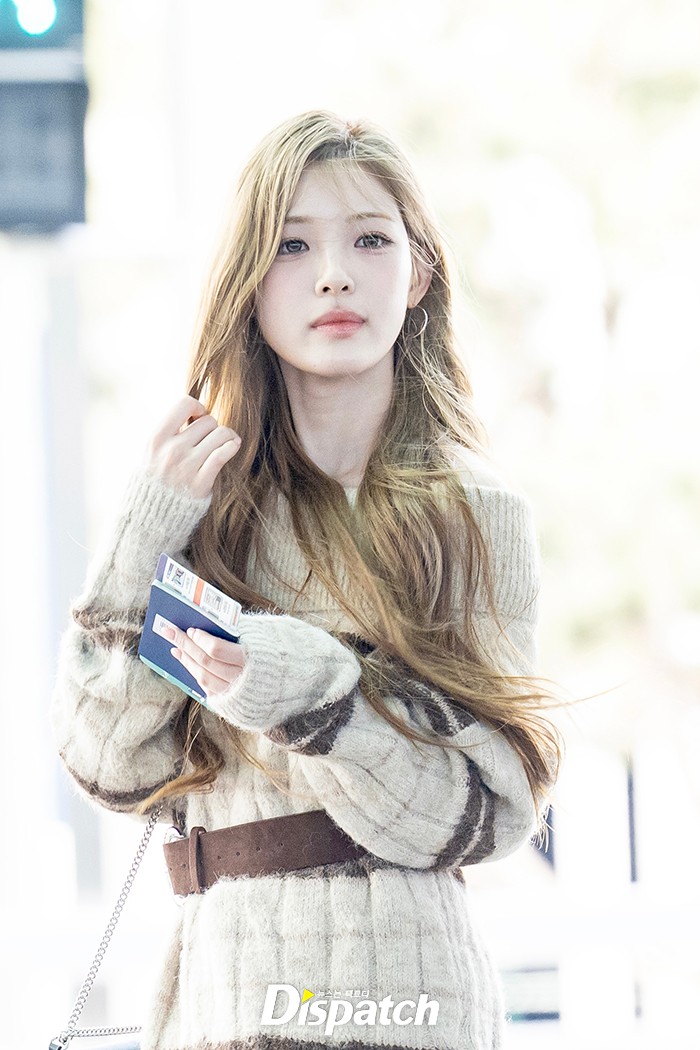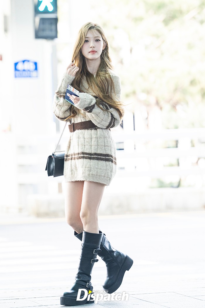 유하는 니트 미니 원피스로 멋을 냈다. 인형같은 미모가 시선을 사로잡았다.