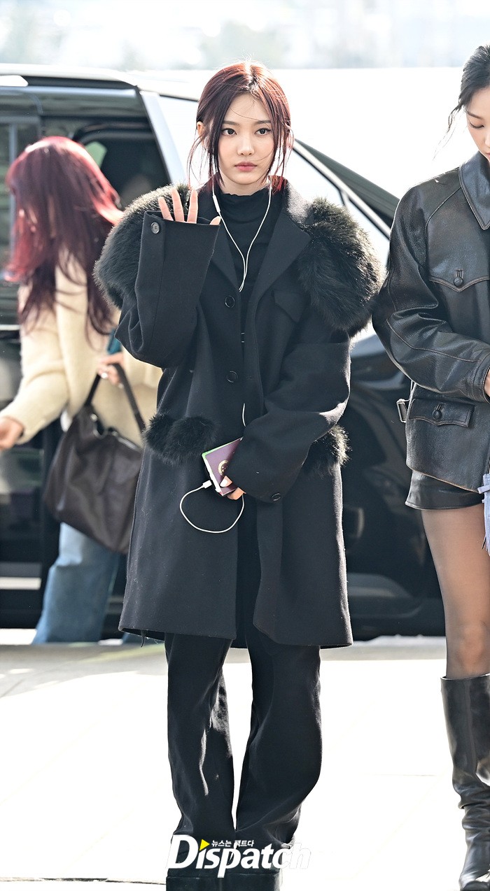 닝닝은 올블랙 스타일로 시크한 공항패션을 연출했다. 인형같은 이목구비가 시선을 사로 잡았다.