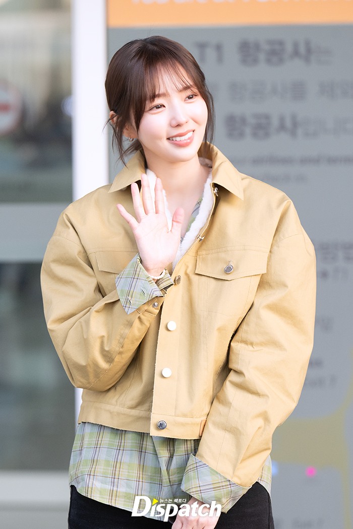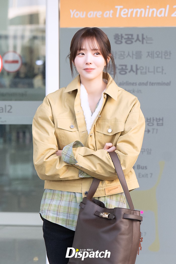 채수빈은 블랙 팬츠에 베이지 톤 재킷으로 러블리한 공항패션을 연출했다. 청순한 매력이 돋보였다.