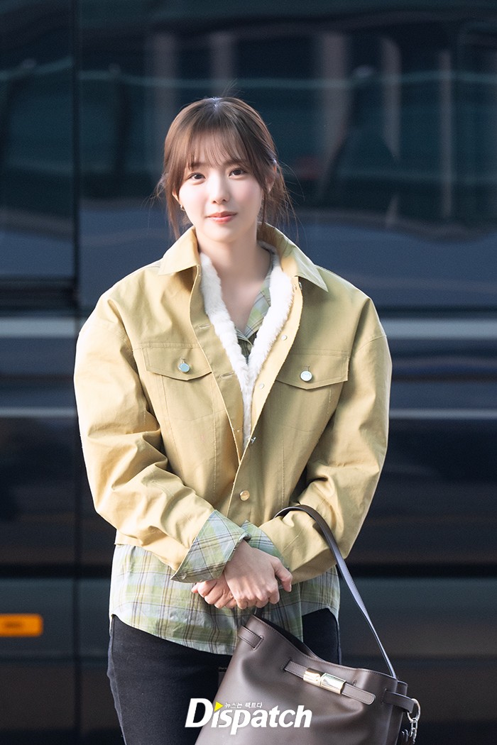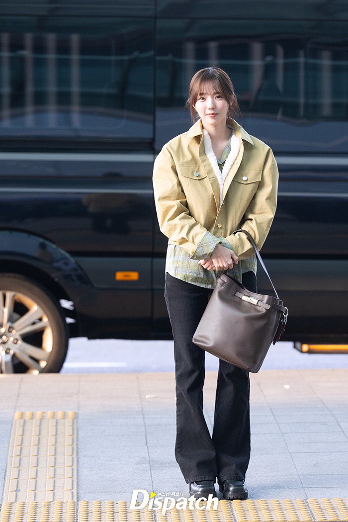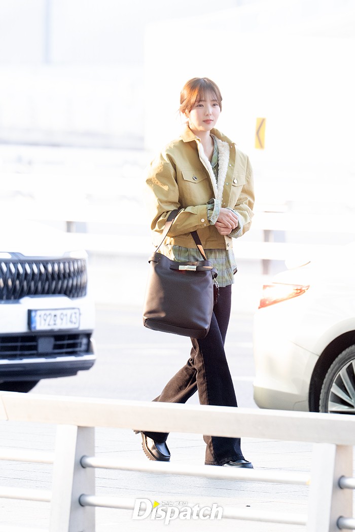채수빈은 블랙 팬츠에 베이지 톤 재킷으로 러블리한 공항패션을 연출했다. 청순한 매력이 돋보였다.