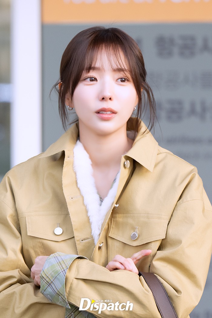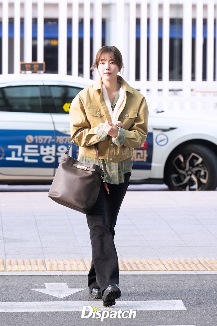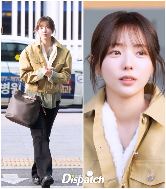 채수빈은 블랙 팬츠에 베이지 톤 재킷으로 러블리한 공항패션을 연출했다. 청순한 매력이 돋보였다.