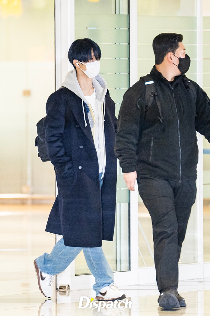 재희는 후디와 롱코트로 멋을 냈다. 잘생긴 비주얼이 돋보였다.