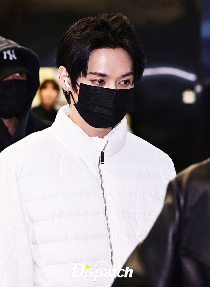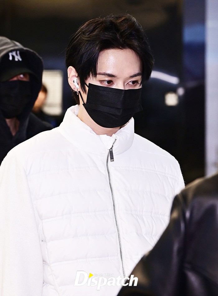 리노는 마스크에도 또렷한 이목구비로 눈길을 끌었다. 강렬한 눈빛으로 입국장을 나섰다.