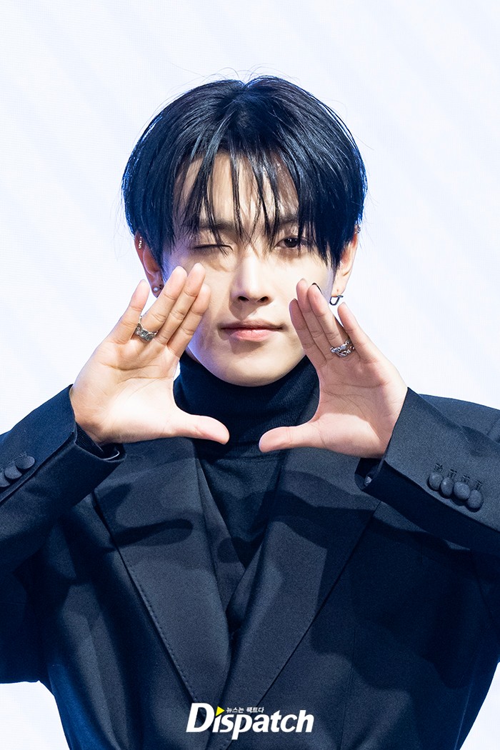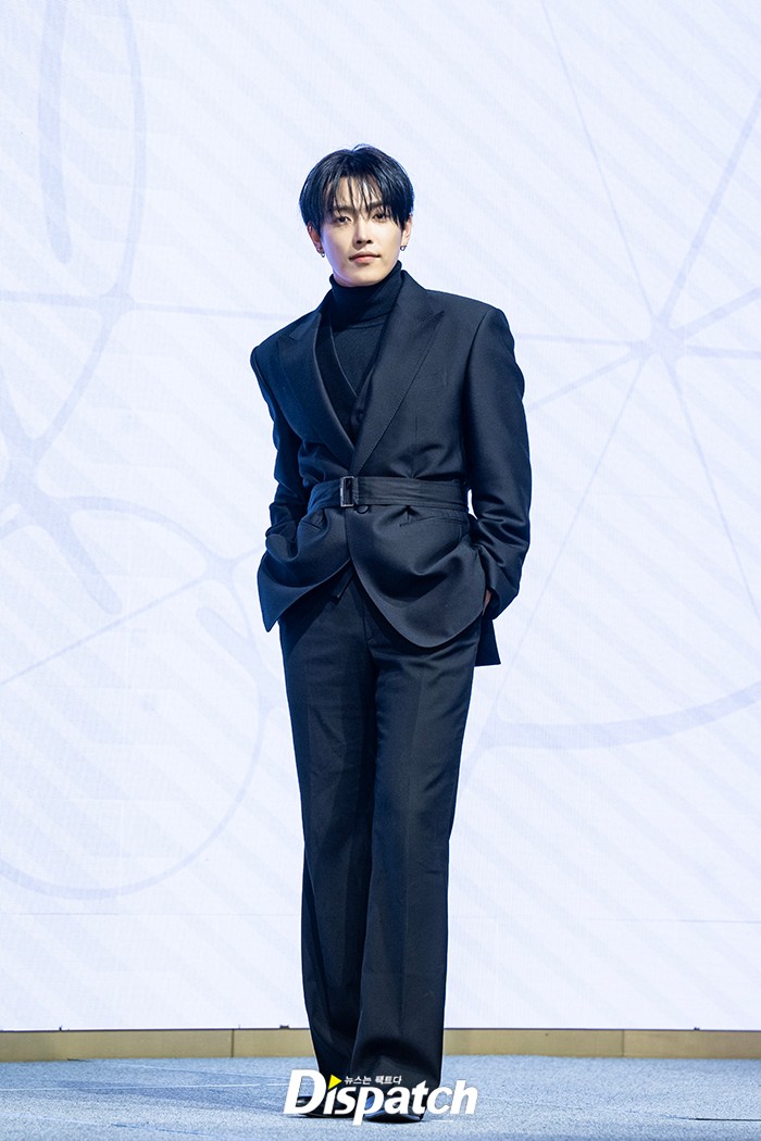 홍중은 올블랙 수트로 시크한 분위기를 완성했다. 잘생긴 비주얼이 돋보였다.