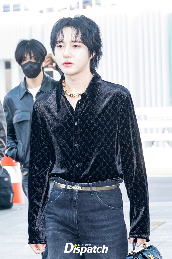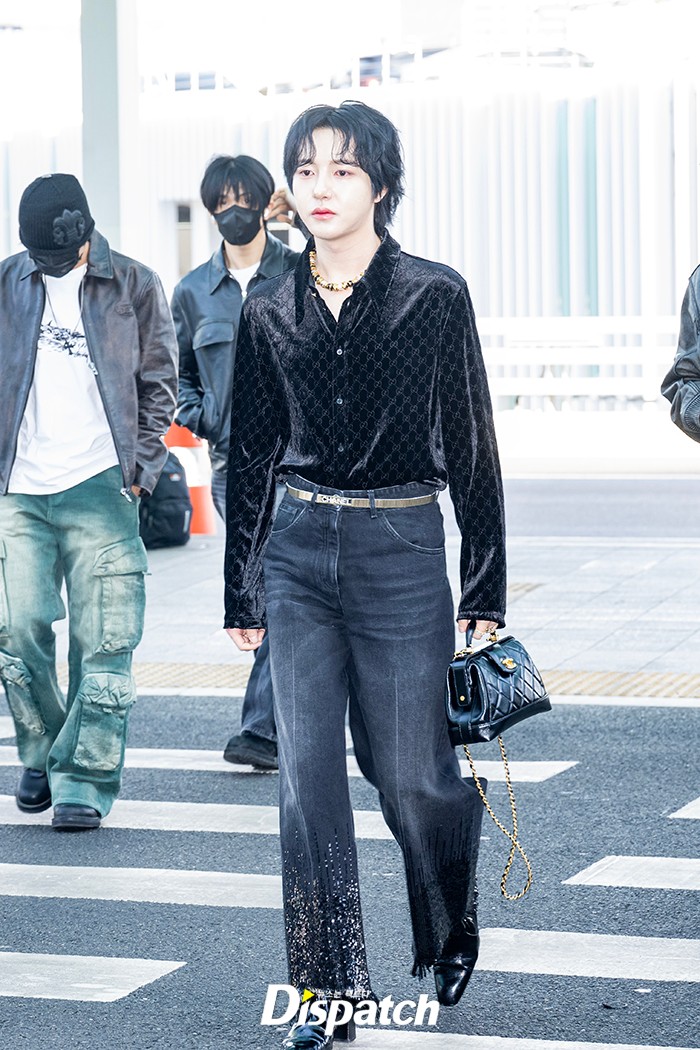 런쥔은 벨벳 셔츠와 블랙 데님으로 젠더리스룩을 완성했다. 잘생긴 비주얼이 시선을 사로잡았다.