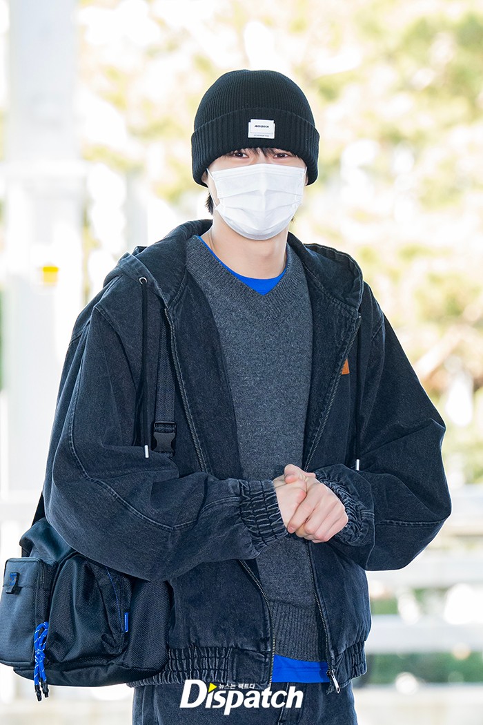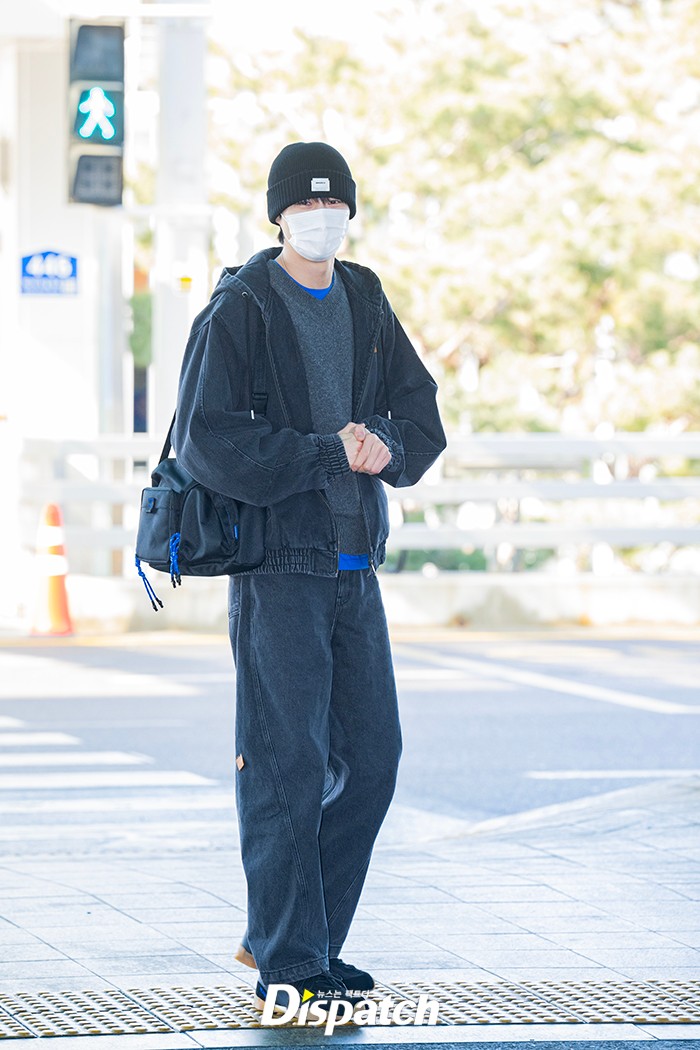 변우석은 데님 후드 점퍼와 팬츠로 멋을 냈다. 마스크와 비니 모자로 얼굴을 가렸다.