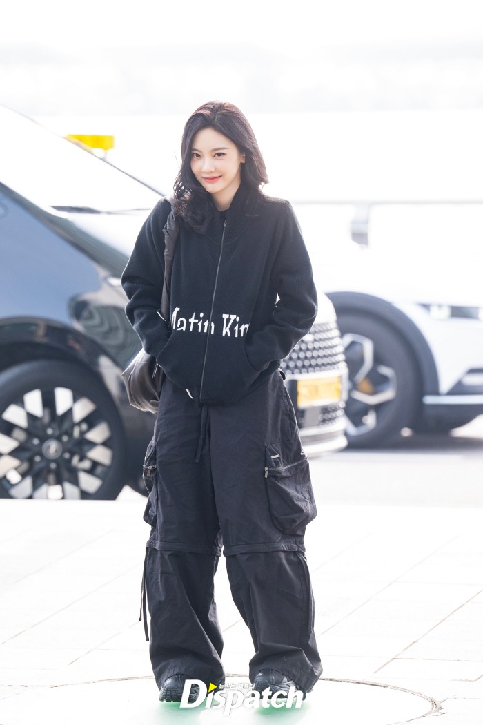 닝닝은 올블랙룩으로 시크하면서도 편안한 공항패션을 완성했다. 인형같은 미모가 시선을 사로잡았다.
