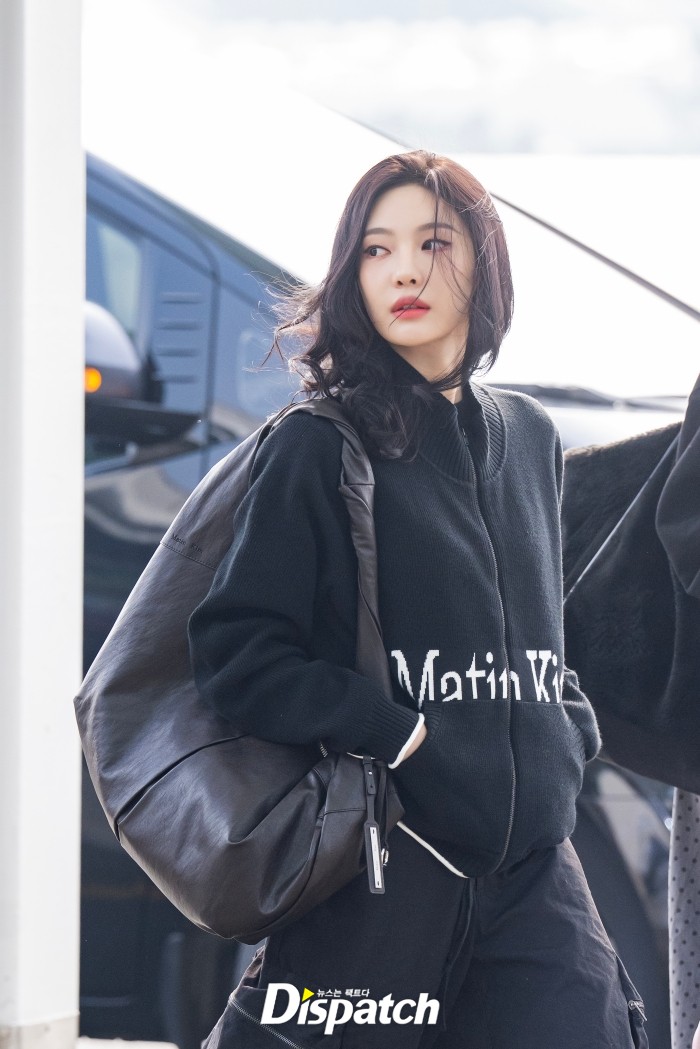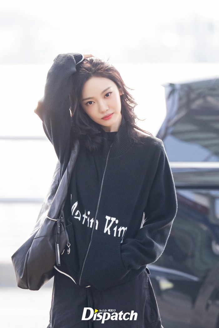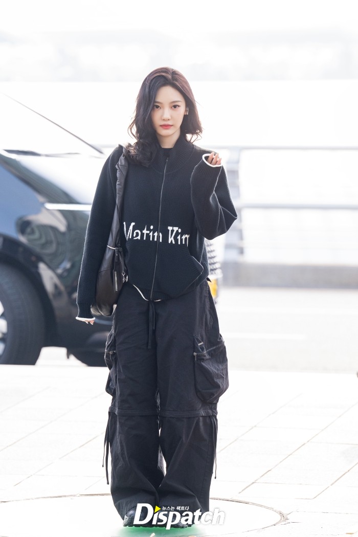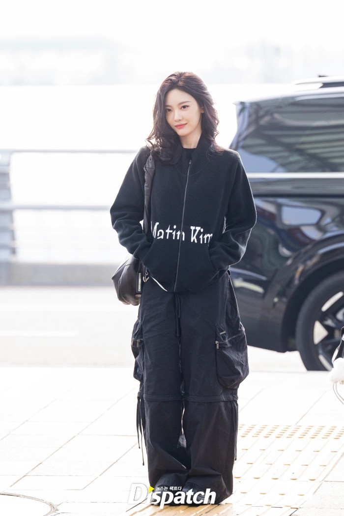 닝닝은 올블랙룩으로 시크하면서도 편안한 공항패션을 완성했다. 인형같은 미모가 시선을 사로잡았다.