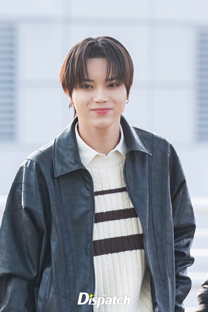 률은 레더 재킷과 데님 팬츠로 멋을 냈다. 잘생긴 비주얼이 돋보였다.