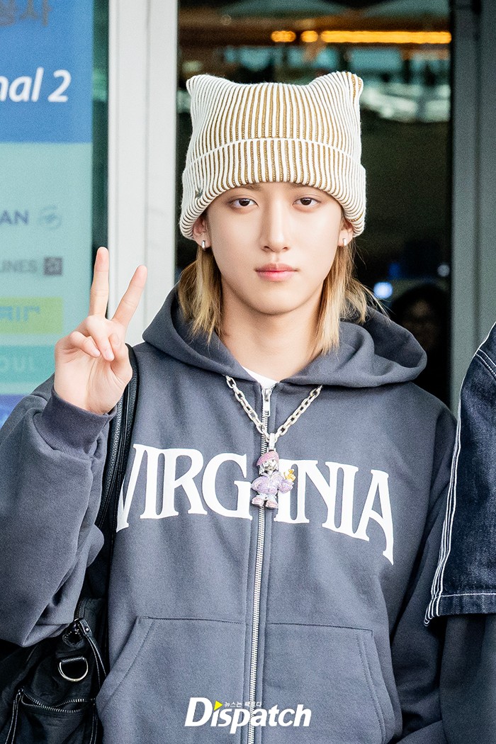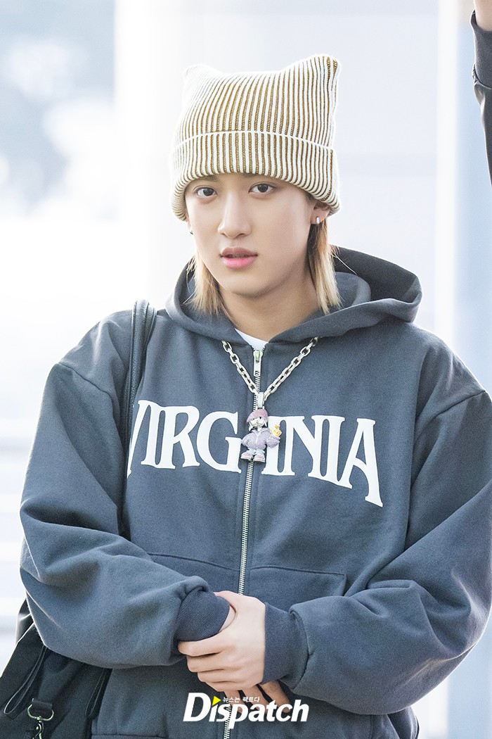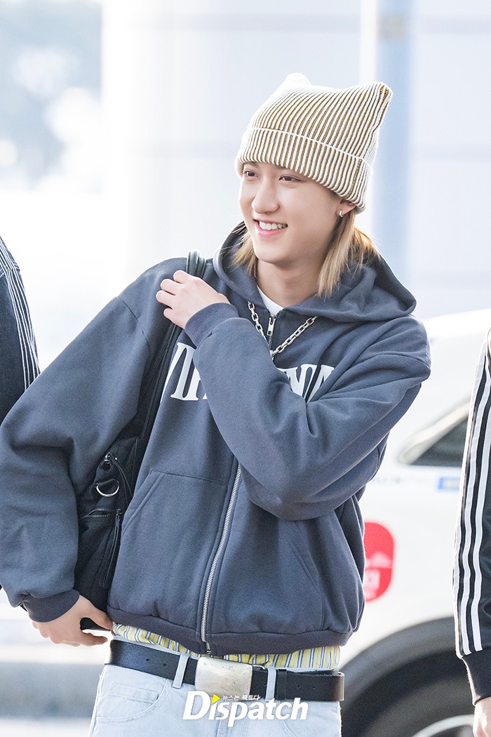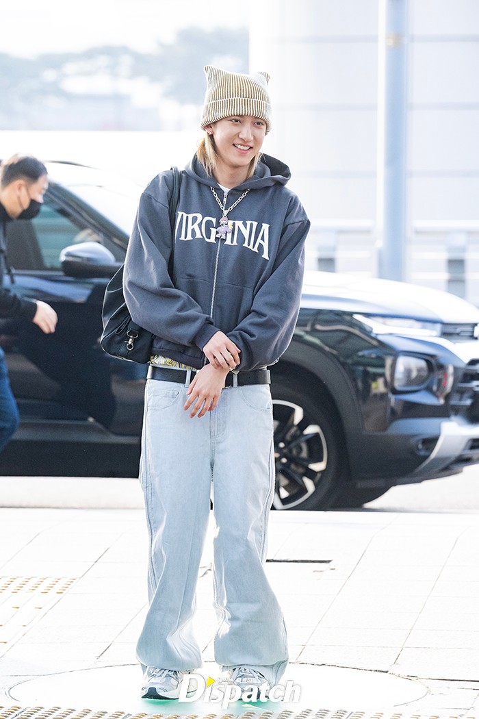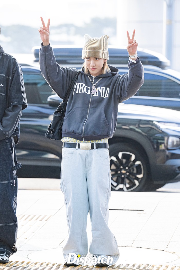 우진은 집업 후디와 데님팬츠로 공항패션을 완성했다. 잘생긴 비주얼이 시선을 사로잡았다.