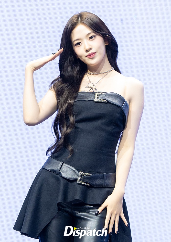 안유진은 올블랙 의상으로 시크한 맵시를 뽐냈다. 아름다운 미모가 돋보였다.