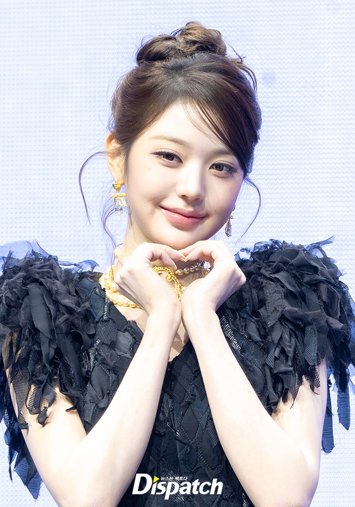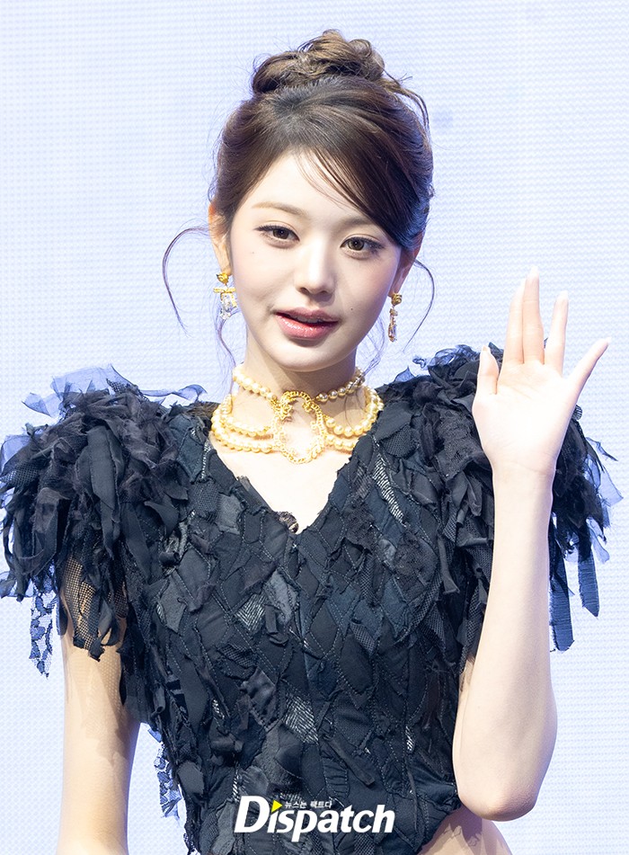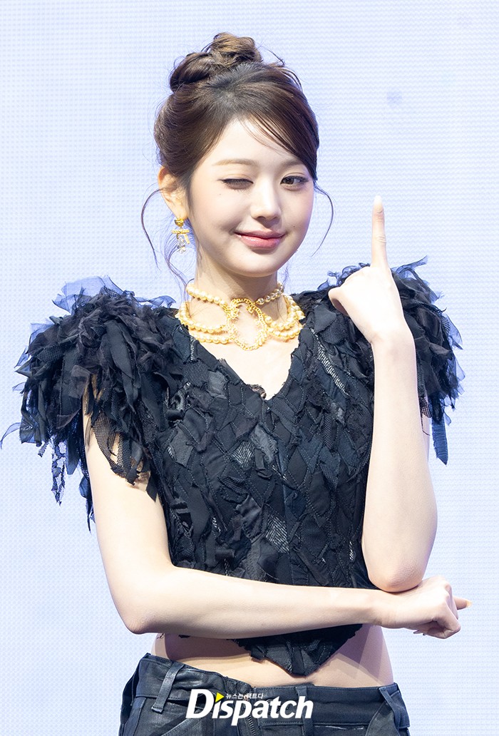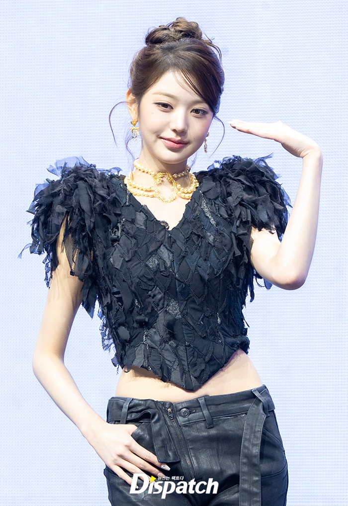 장원영은 올블랙 의상으로 아름다운 미모를 뽐냈다. 인형같은 비주얼로 남심을 사로잡았다.