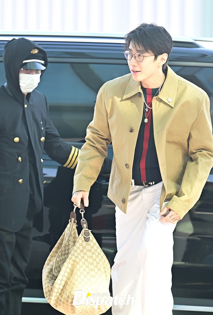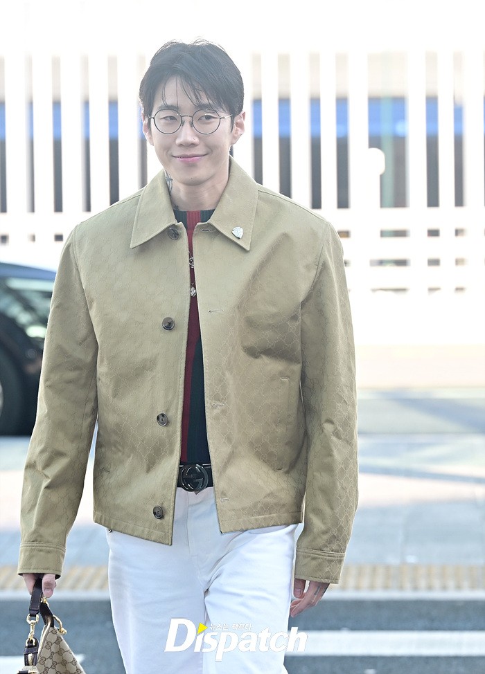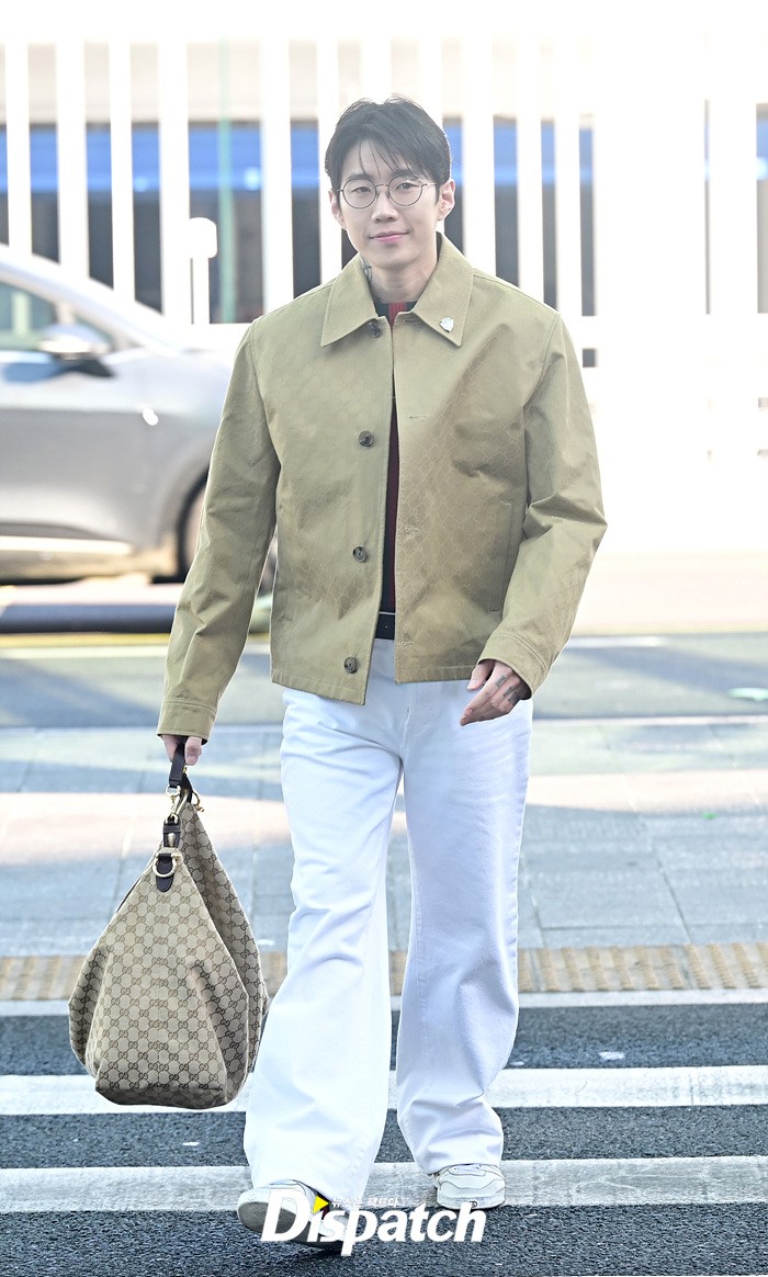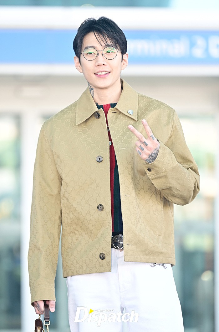 박재범은 베이지 컬러의 재킷과 코튼 팬츠로 캐주얼한 공항패션을 연출했다. 스윗한 미소와 힙한 포즈도 인상적이였다.
