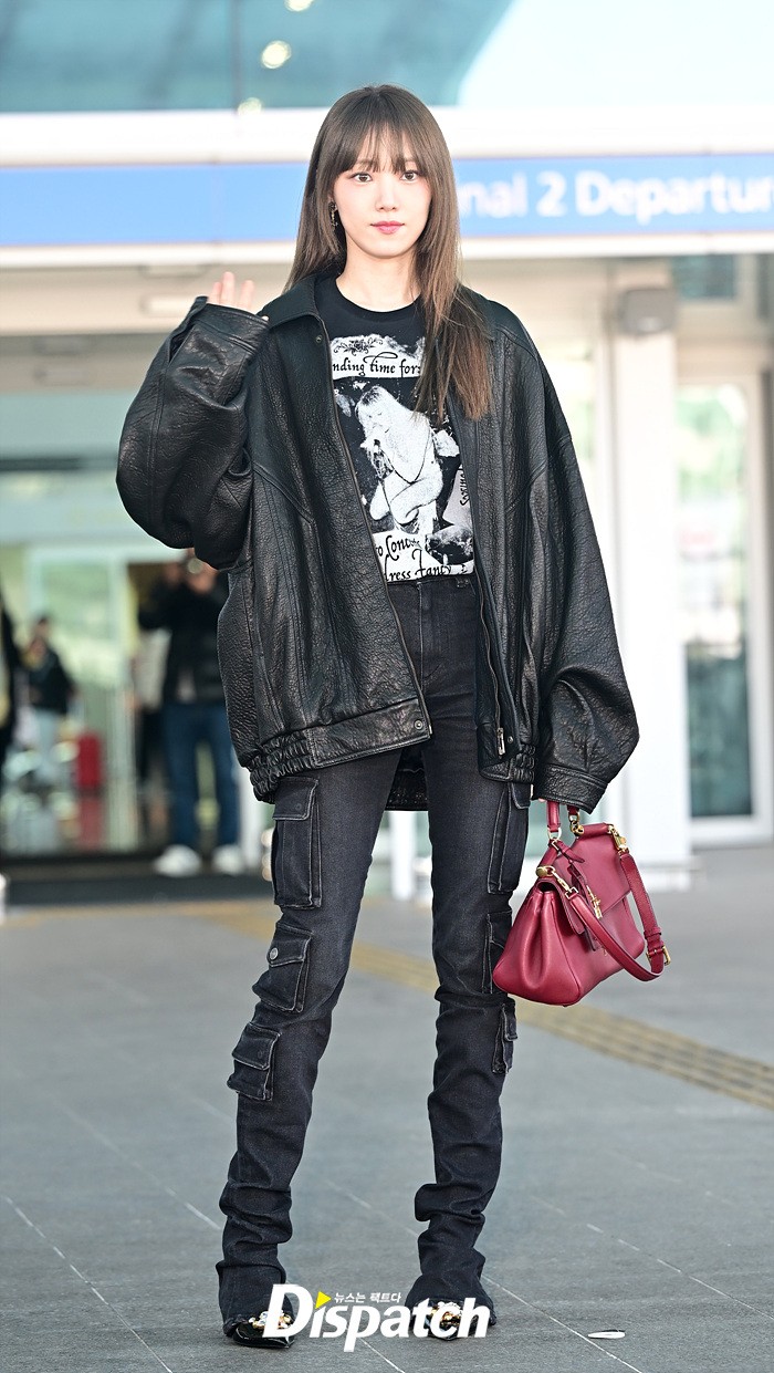 이성경은 올블랙 스타일로 시크한 공항패션을 완성했다. 큰 키와 작은 얼굴, 청순한 비주얼도 돋보였다.