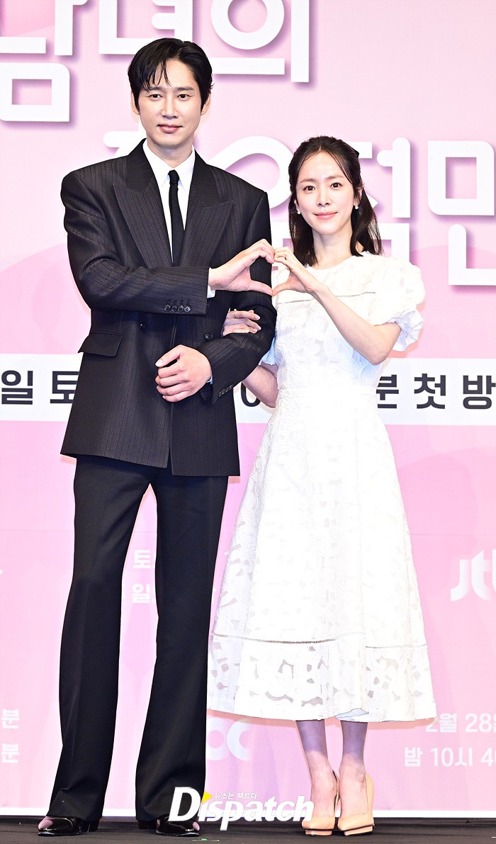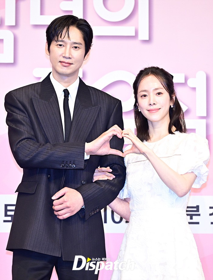 이날 기자간담회 참석한 한지민과 박성훈은 훈훈한 비주얼로 시선을 사로 잡았다. 하트 포즈를 그리며 찰떡호흡도 뽐냈다.