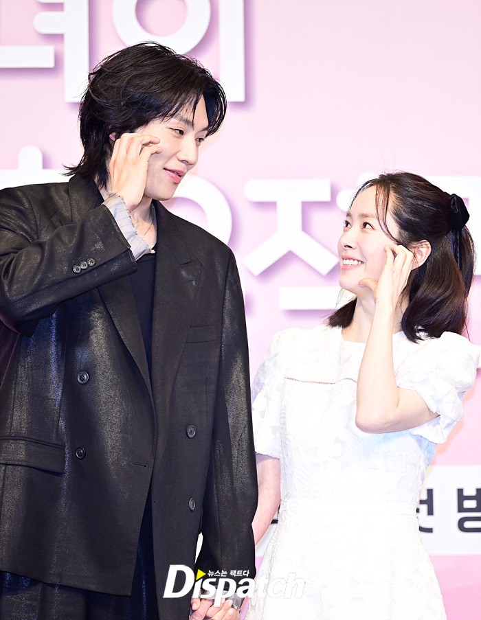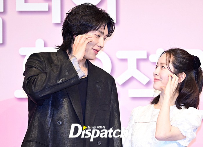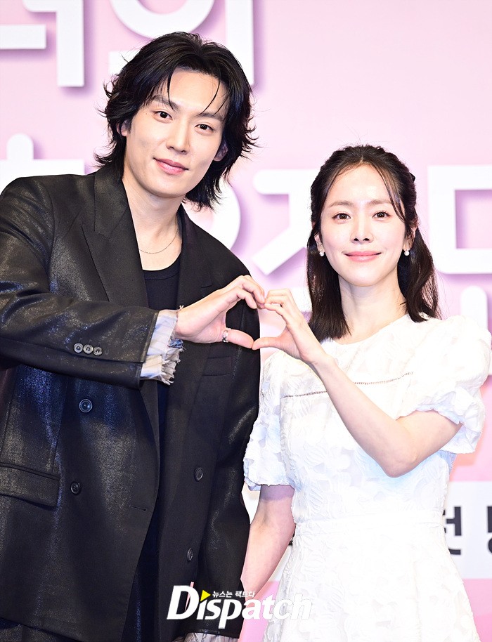 이날 기자간담회 참석한 한지민과 이기택은 로맨틱한 포즈로 취재진의 시선을 모았다. 선남선녀의 훈훈한 비주얼도 돋보였다.