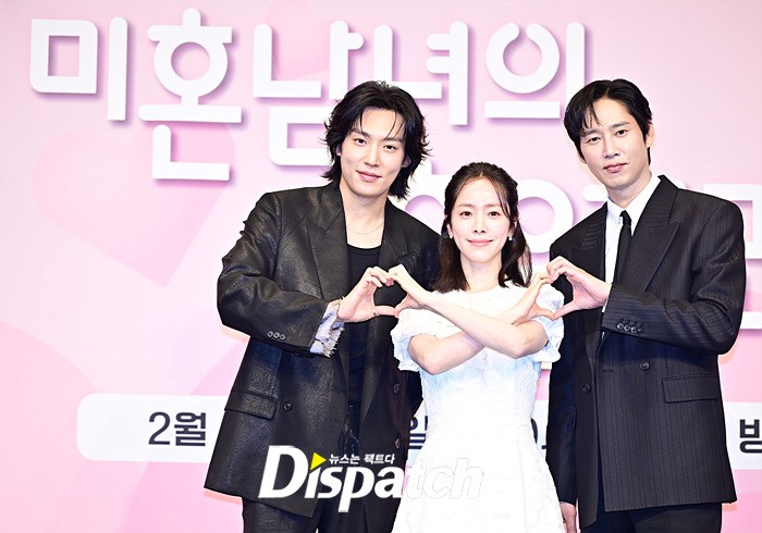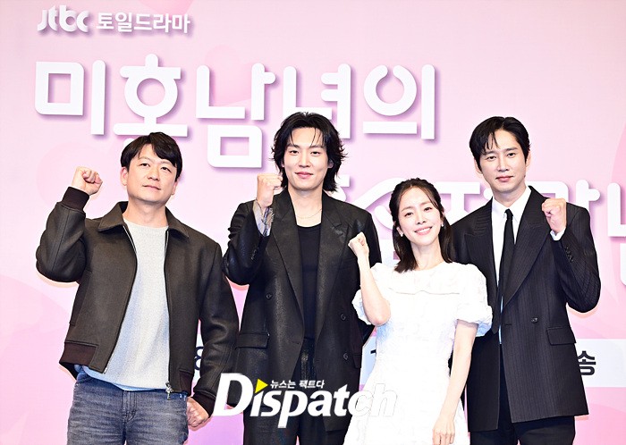 JTBC 새 토일드라마 '미혼남녀의 효율적 만남(이하 '미혼남녀') 제작발표회가 26일 서울 구로구 한 호텔에서 진행됐다. 배우 한지민, 박성훈, 이기택, 이재훈 감독이 참석했다.