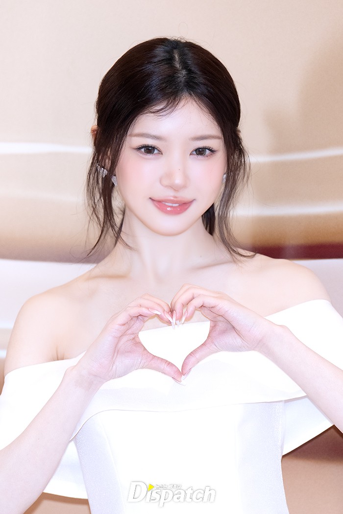 '아일릿' 모카는 화이트 드레스로 우아한 매력을 뽐냈다. 인형같은 미모가 돋보였다.