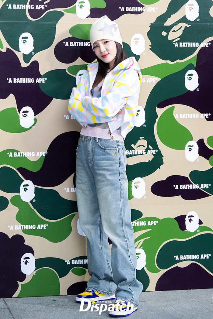 산다라박은 화려한 패턴의 후디와 청바지로 멋을 냈다. 깜직한 포즈로 시선을 사로잡았다.