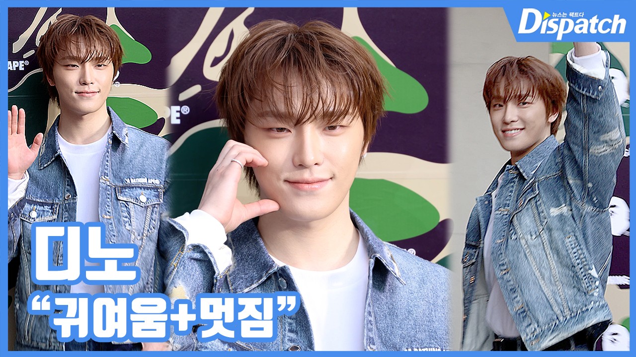 이날 디노는 청청 패션으로 멋을 냈다. '세븐틴'의 막내 다운 귀여운 비주얼이 돋보였다.