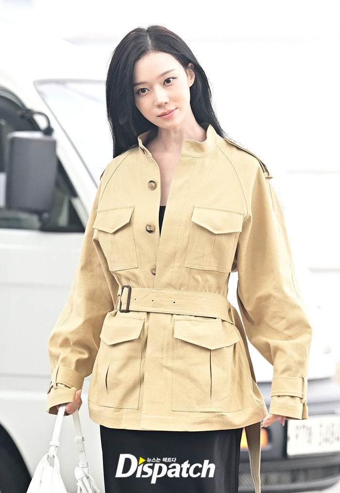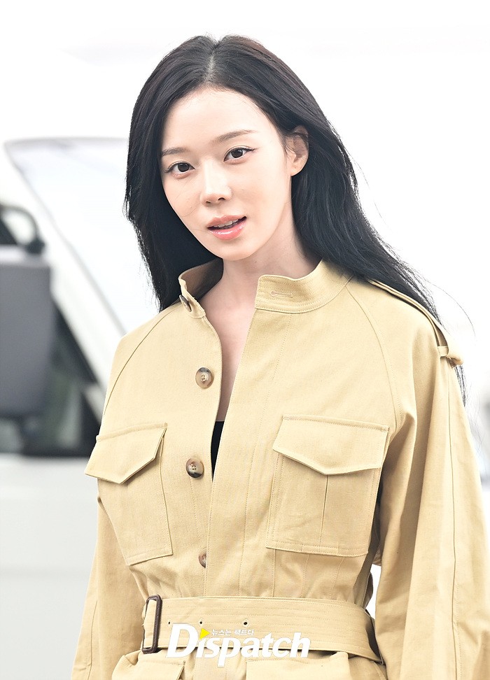 윈터는 베이지 컬러의 하프코트와 블랙 스커트로 세련된 공항패션을 완성했다. 인형같은 이목구비와 러블리한 미소가 돋보였다.