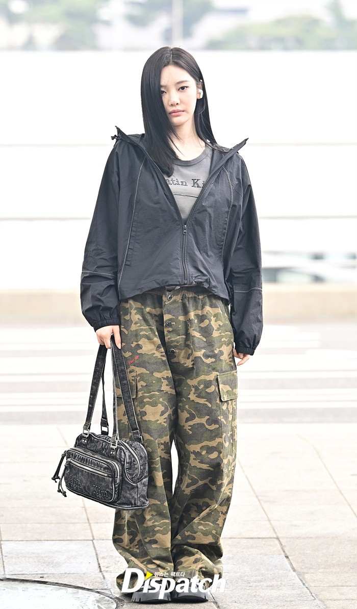 닝닝은 블랙 컬러의 윈드 브레이커와 카고팬츠로 힙한 공항패션을 완성했다. 시크한 비주얼과 러블리한 미소도 돋보였다.