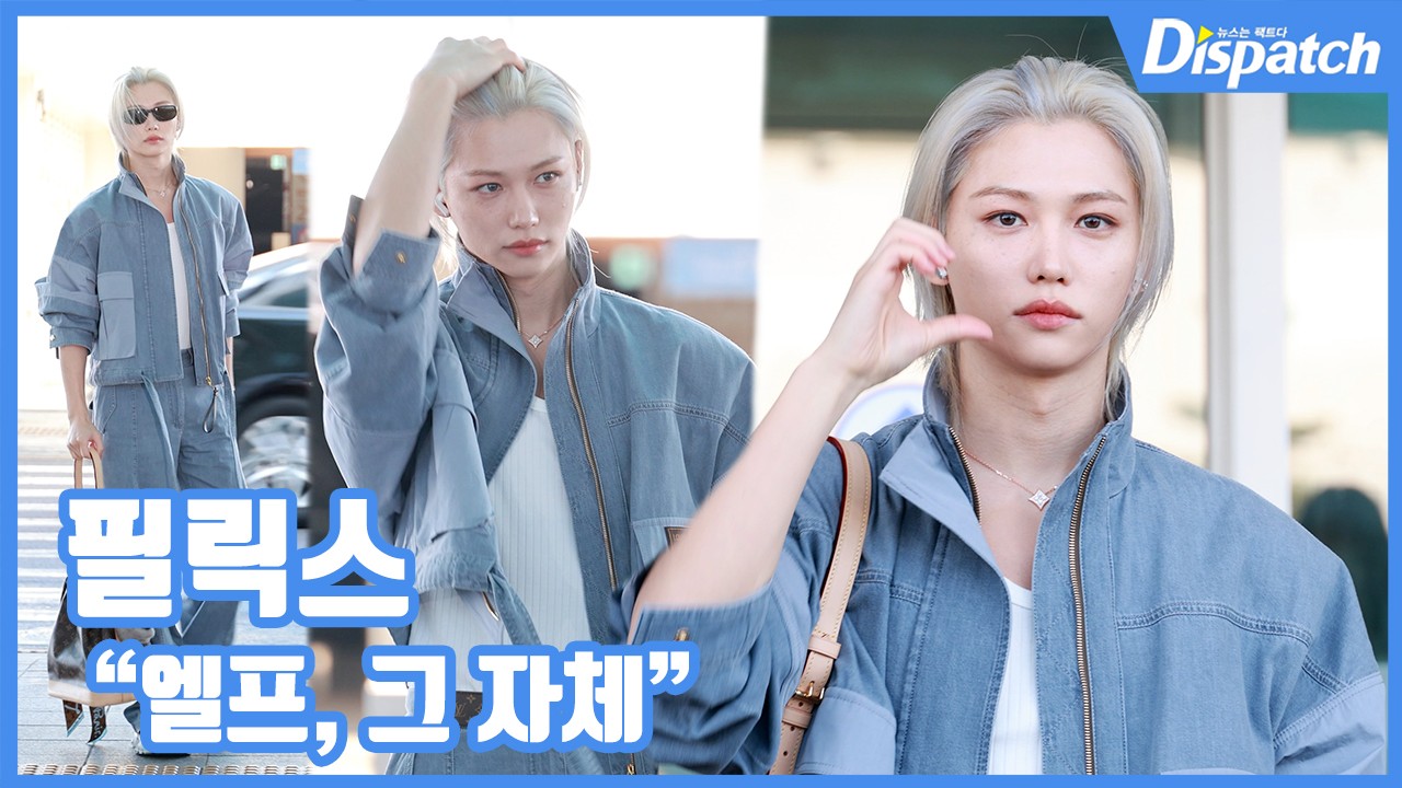 이날 필릭스는 데님 셋업에 빅 백을 매치해 럭셔리한 공항패션을 선보이며 독보적인 분위기를 자아냈다.