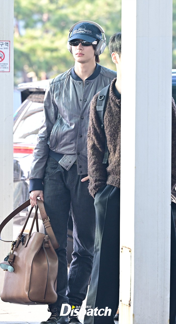 앤톤은 숏재킷과 데님진으로 캐주얼한 공항패션을 완성했다. 훈훈한 비주얼과 강렬한 카리스마가 돋보였다.