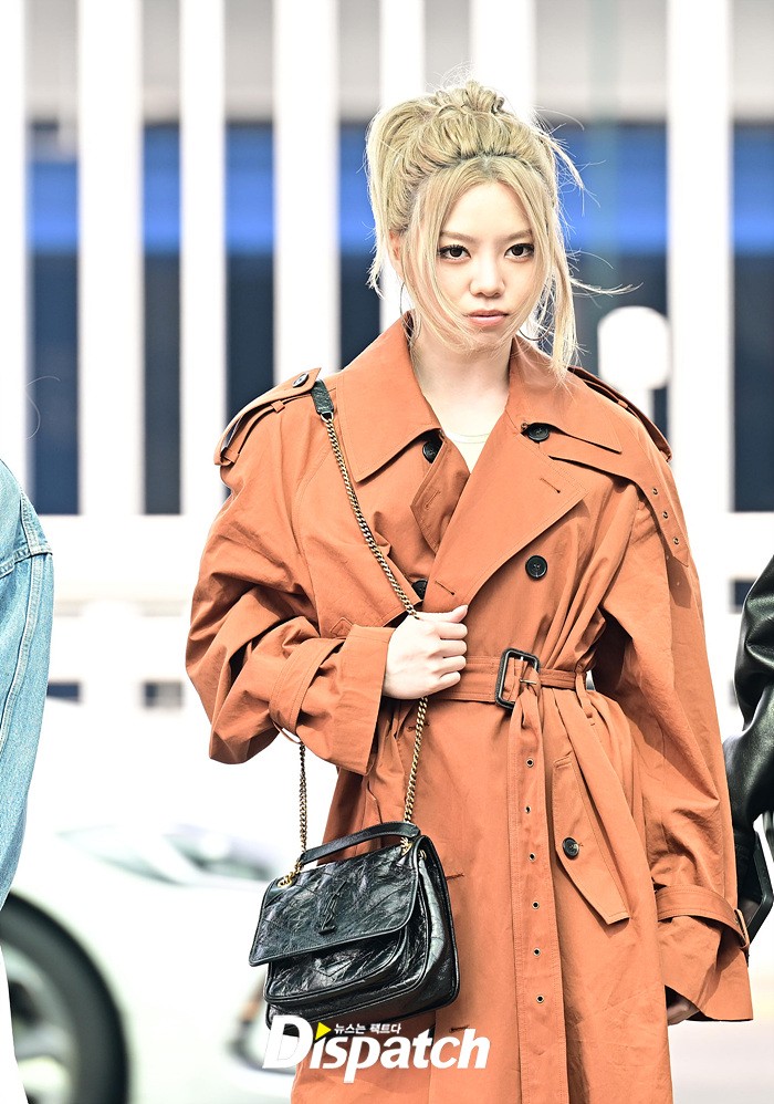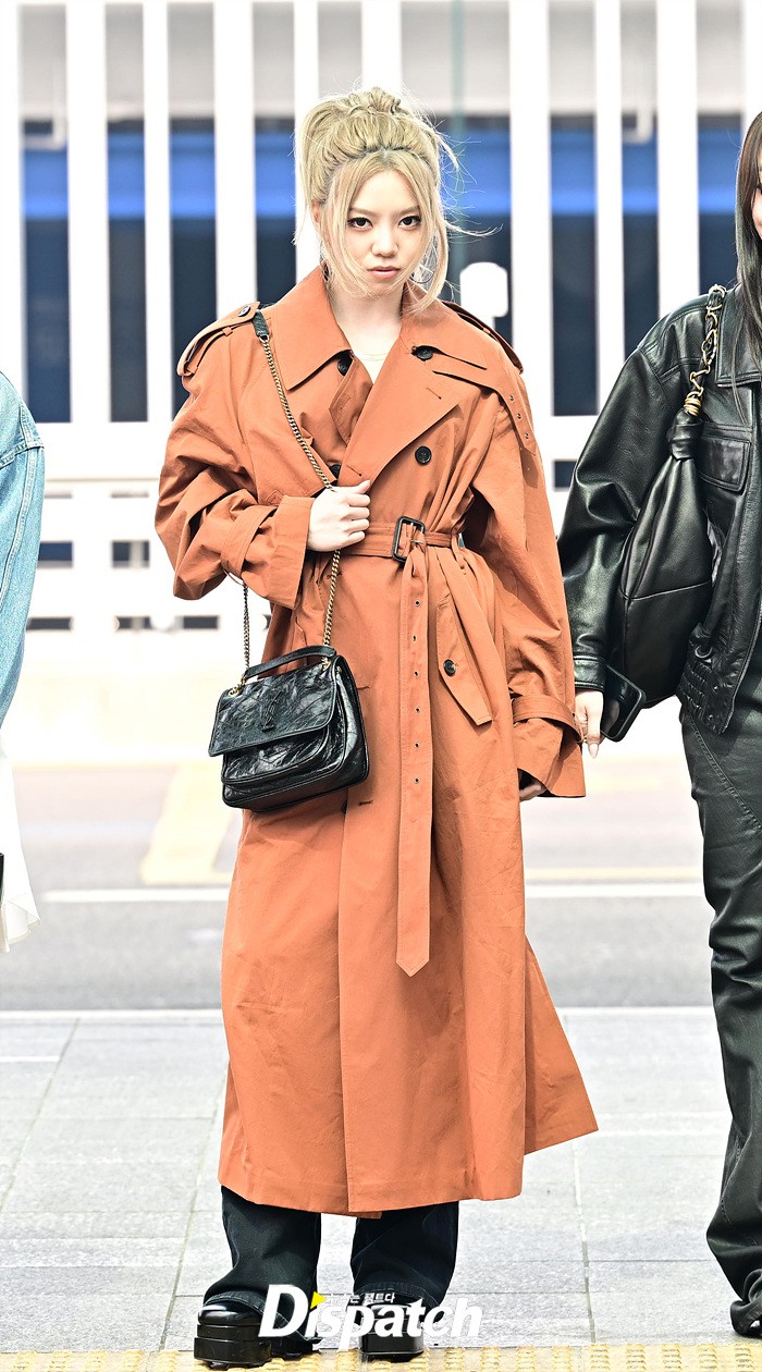 베일리는 강렬한 눈빛으로 출국장을 나섰다. 오렌지 컬러의 코트로 연출한 센스있는 스타일링도 돋보였다.