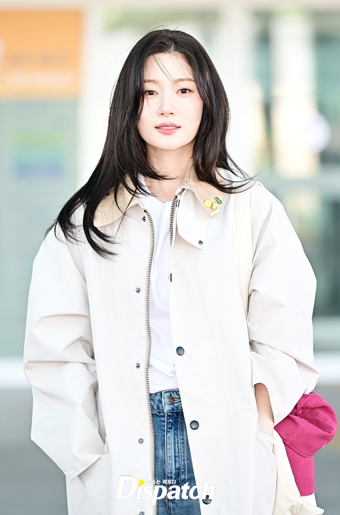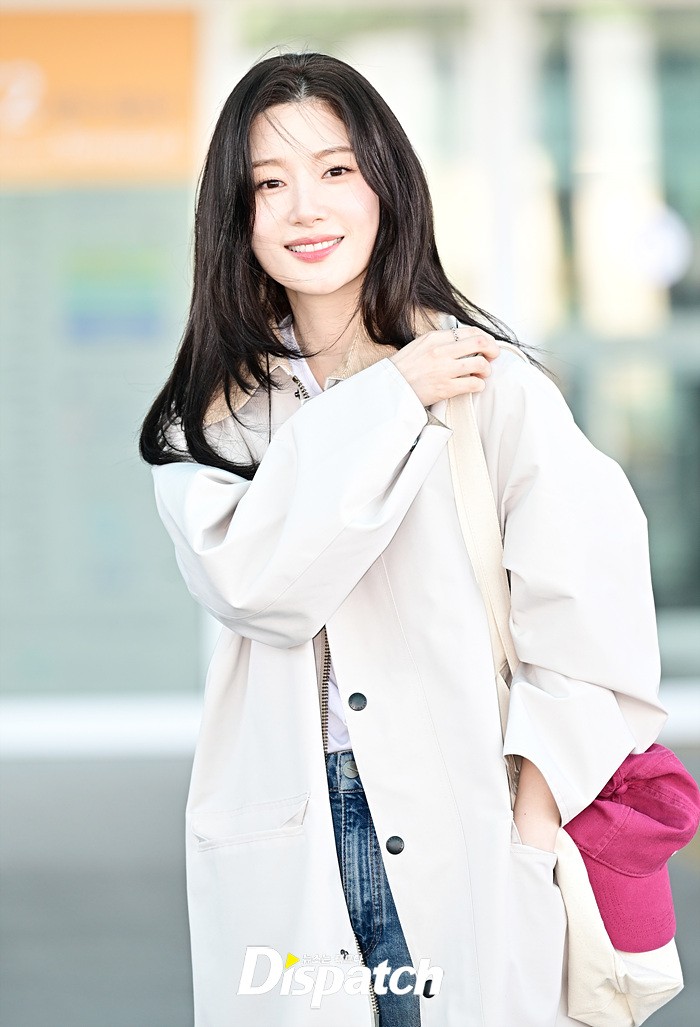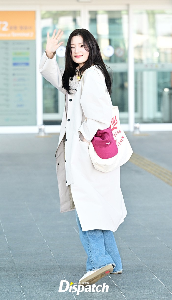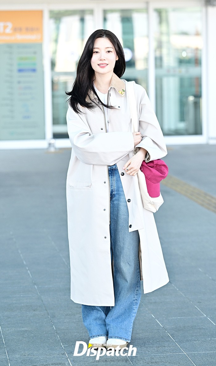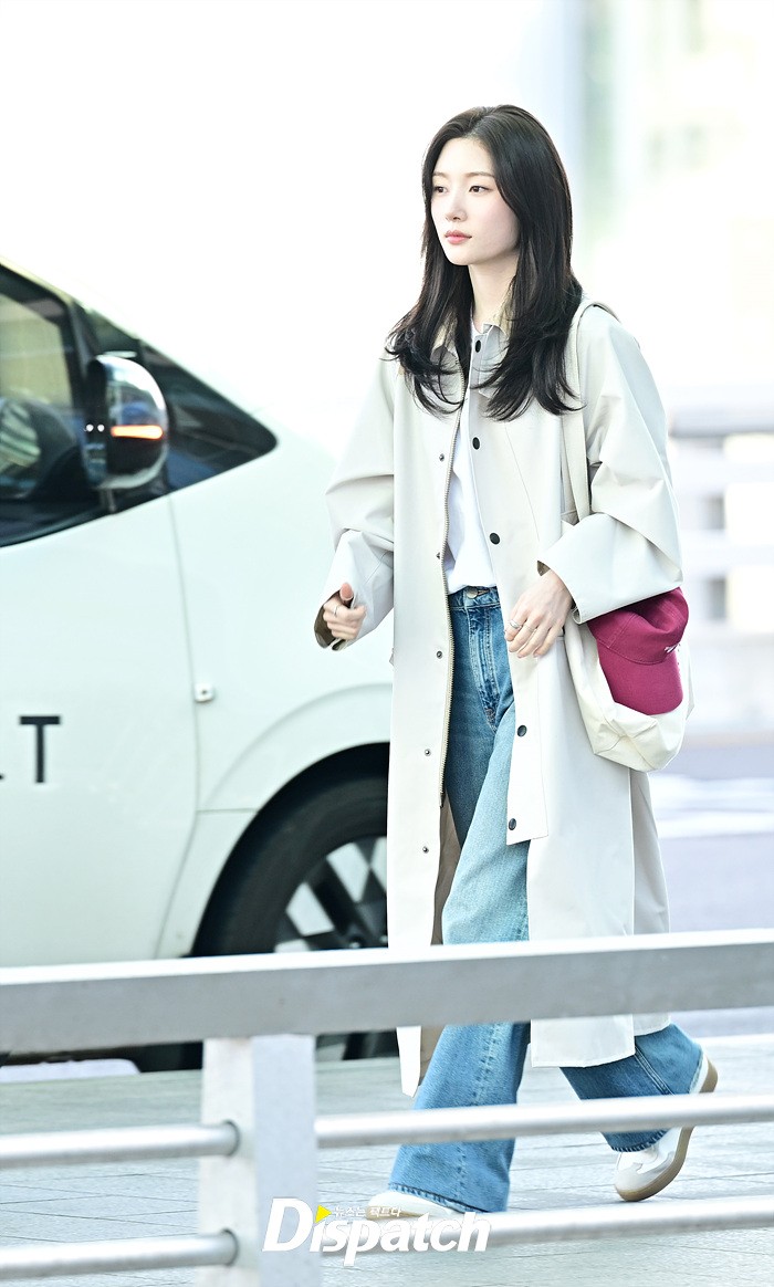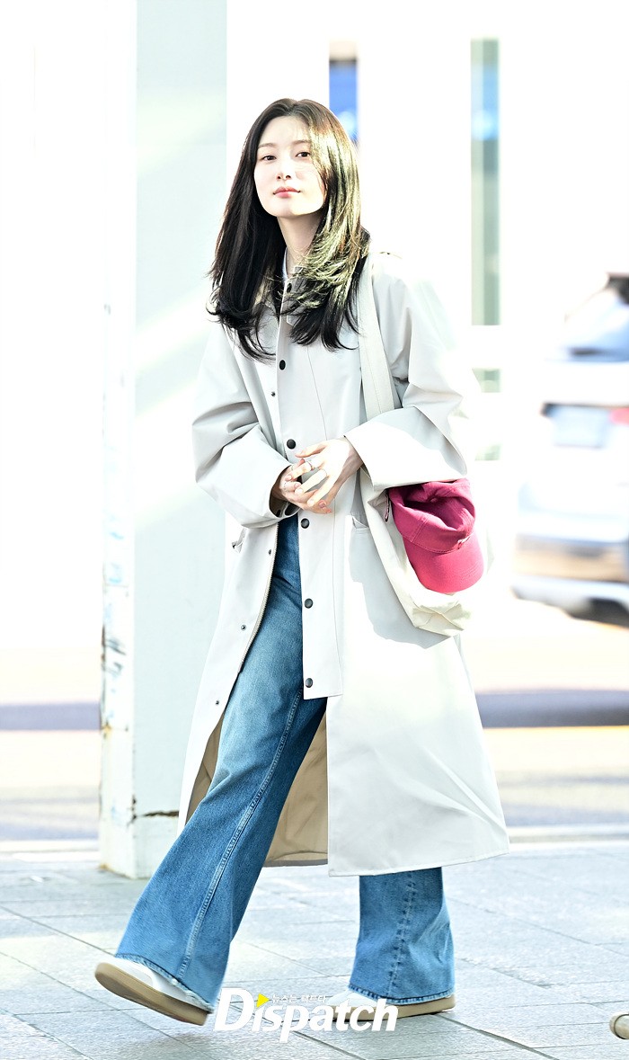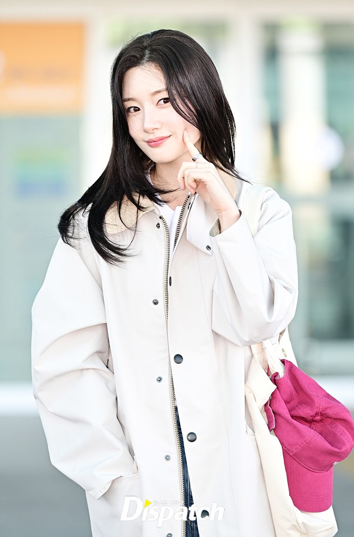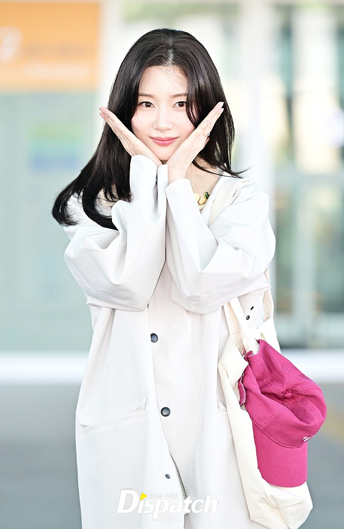 정채연은 트렌치 코트와 데님진으로 캐주얼한 공항패션을 연출했다. 청순한 비주얼과 러블리한 미소가 돋보였다.
