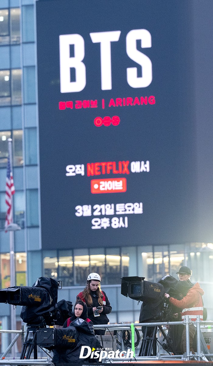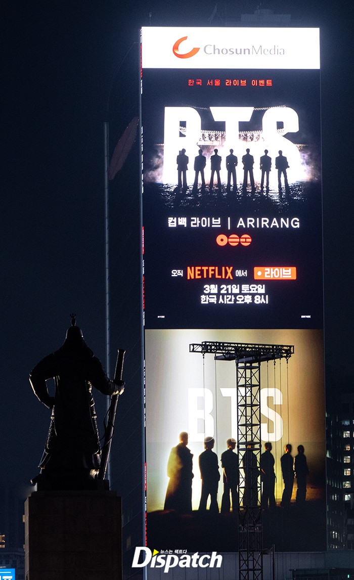 광화문은 야외 무대 설치 및 펜스 정리로 분주한 상태. 국내외 팬들도 미리 찾아와 컴백의 열기를 즐기고 있다. 이번 컴백 무대는 ’넷플릭스‘를 통해서도 생중계된다.