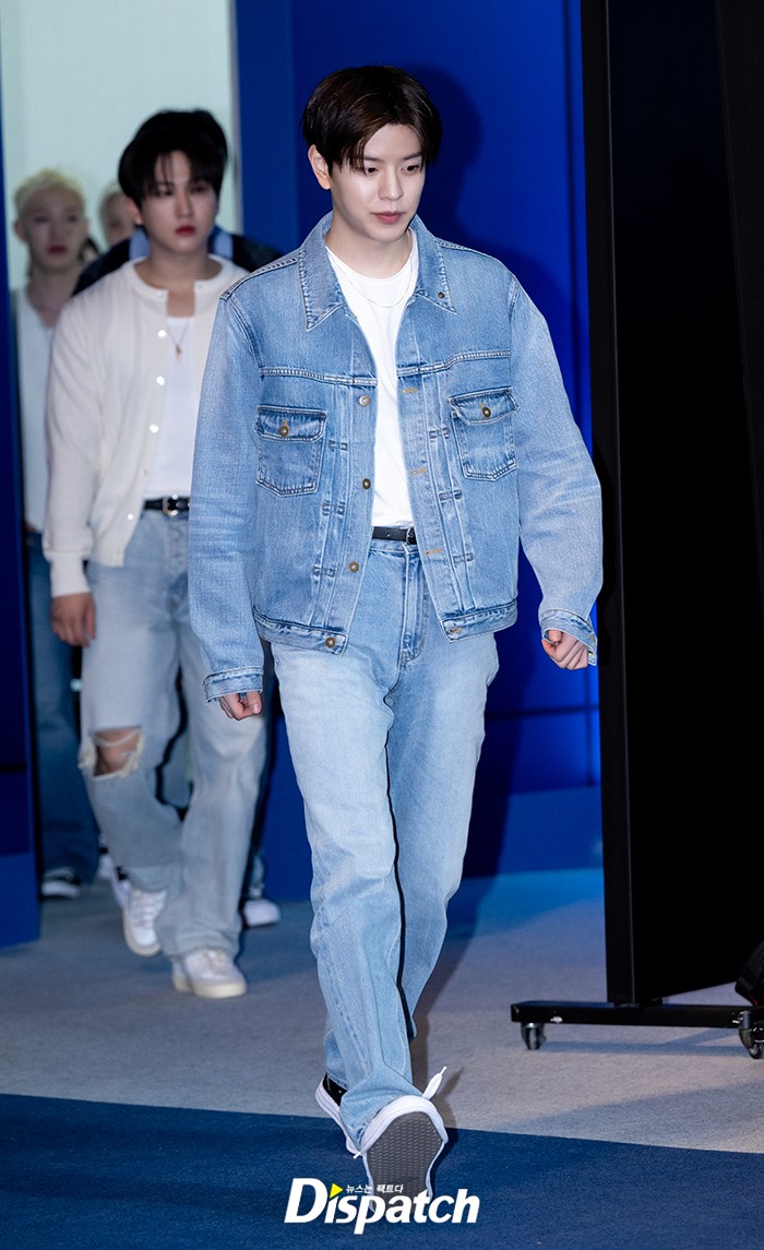 승민은 청자켓과 청바지로 청청패션을 보여줬다. 부드러운 미소가 돋보였다.