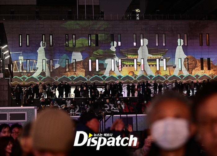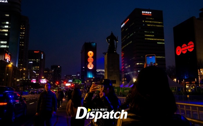 수 많은 팬들이 서울 도심 곳곳에 모여 이날 오후 7시부터 송출되는 메시지를 관람했다.