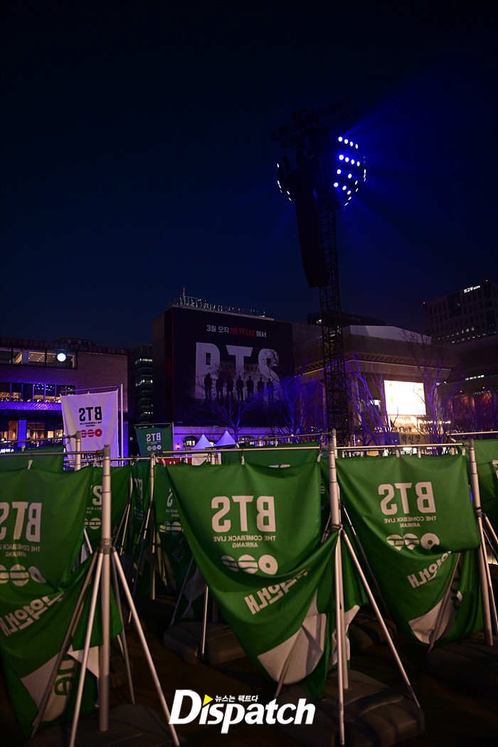 'BTS 컴백 라이브: 아리랑' 공연을 하루 앞둔 20일, 아미를 향한 영상과 메시지가 광화문 광장 일대에 등장했다. 광화문 광장, 숭례문, 남산서울타워, 신세계스퀘어, 동대문디자인플라자(DDP) 등에서 미디어 파사드와 뮤직 라이트쇼가 열렸다.