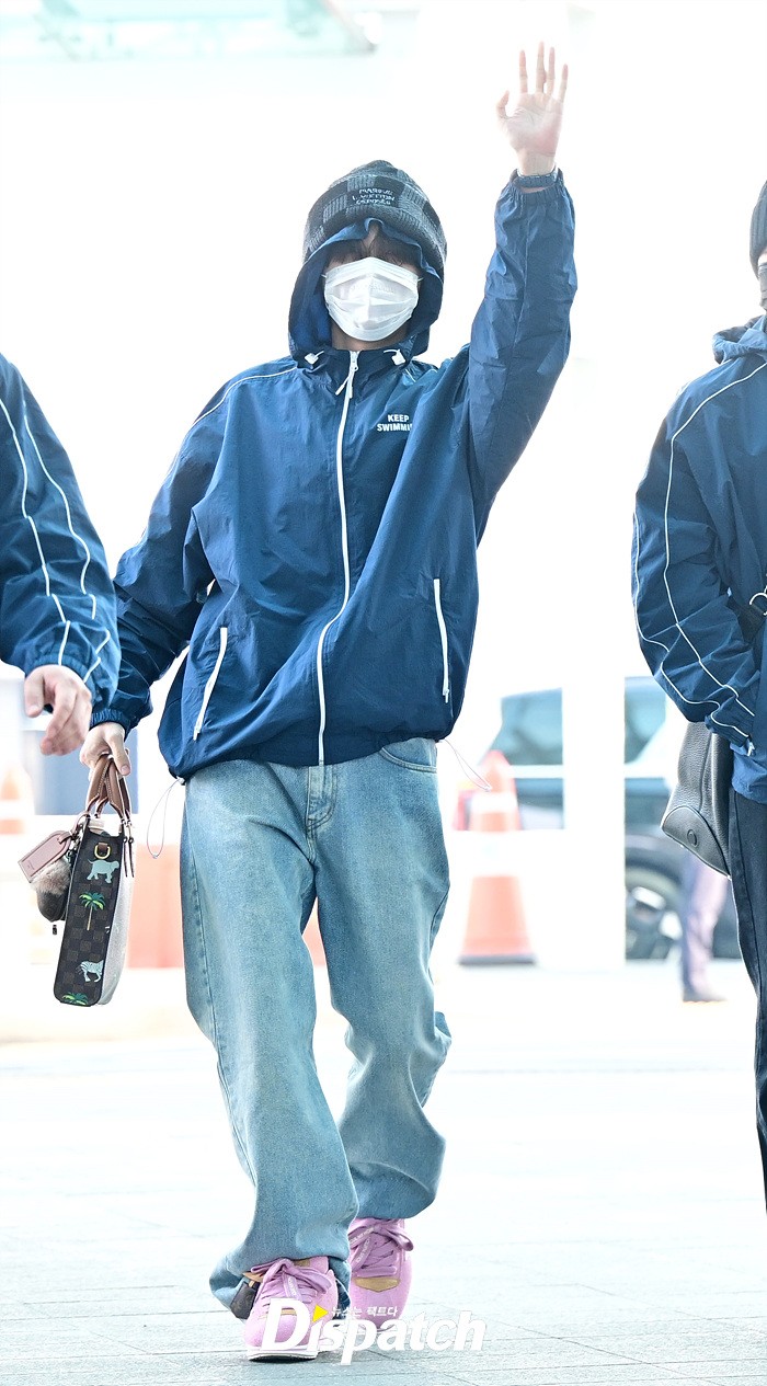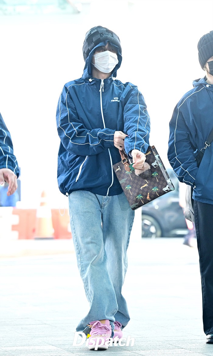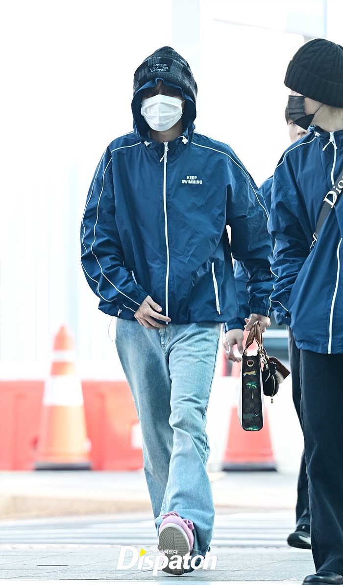 제이홉은 마스크에도 훈훈한 비주얼로 시선을 모았다. 비니와 데님진, 핑크컬러의 슈즈로 연출한 센스있는 스타일도 돋보였다.