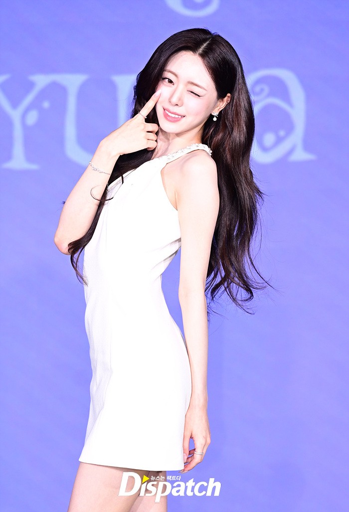 이날 기자간담회에 참석한 유나는 화이트 컬러의 미니 드레스로 눈부신 미모를 뽐냈다. 청순한 비주얼과 러블리한 미소가 돋보였다.
