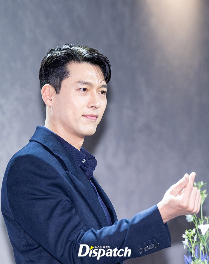 현빈은 네이비 컬러 수트로 품위있는 스타일을 보여줬다. 멋진 비주얼로 시선을 사로잡았다.