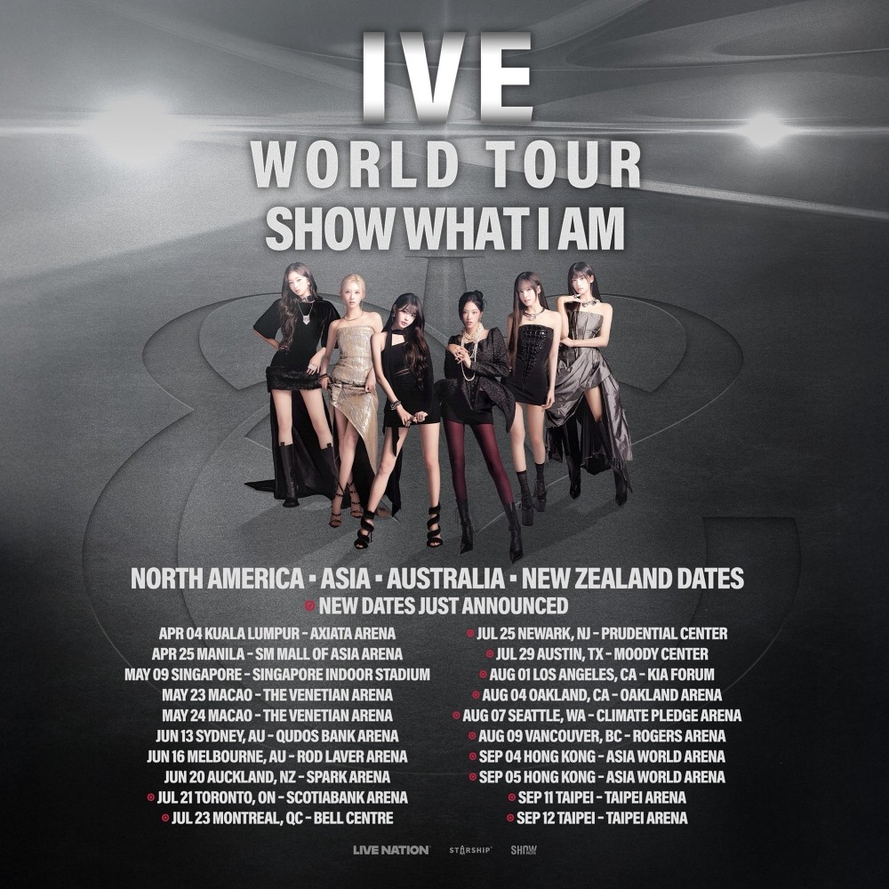 스타쉽엔터테인먼트는 지난 25일 공식 SNS에 아이브의 2번째 월드투어 '쇼 왓 아이 엠'(SHOW WHAT I AM) 북미 및 아시아 추가 일정을 공개했다.
