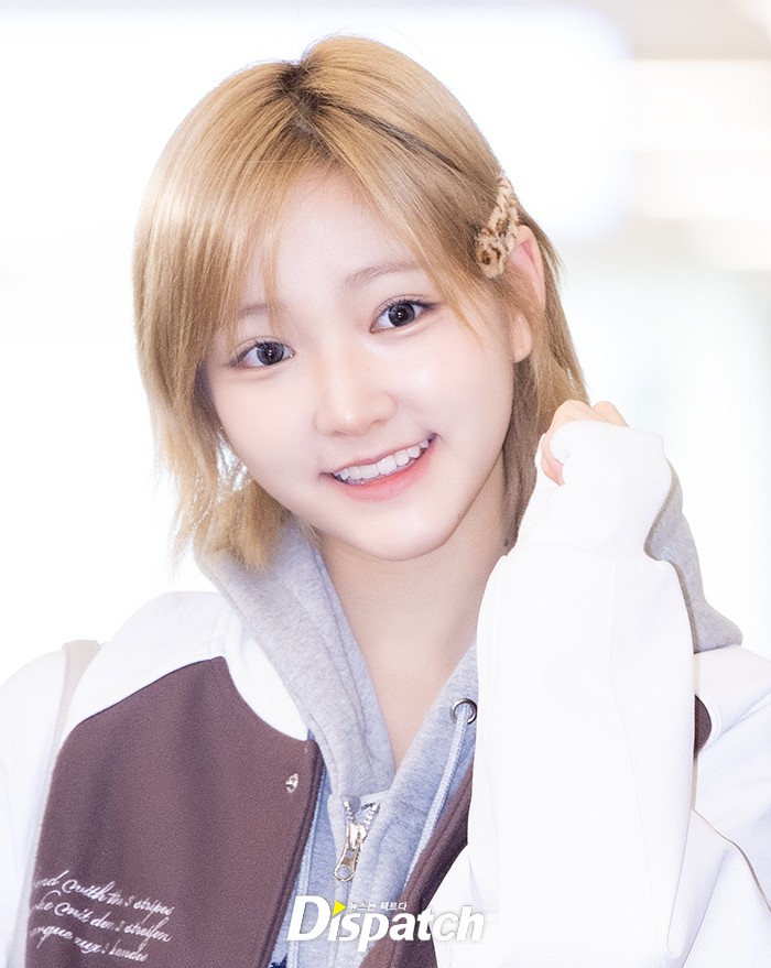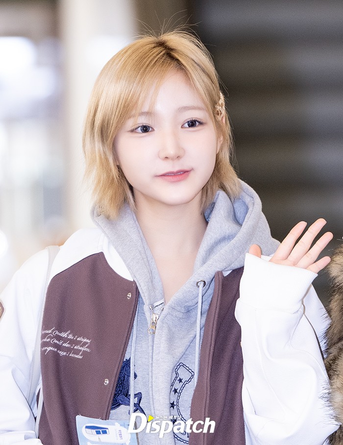 지유는 야구점퍼와 후디, 숏팬츠로 맵시를 뽐냈다. 밝은 표정으로 공항을 빛냈다.