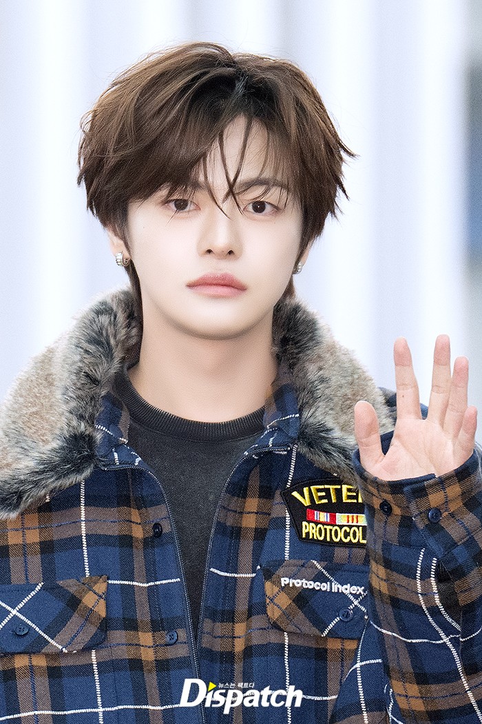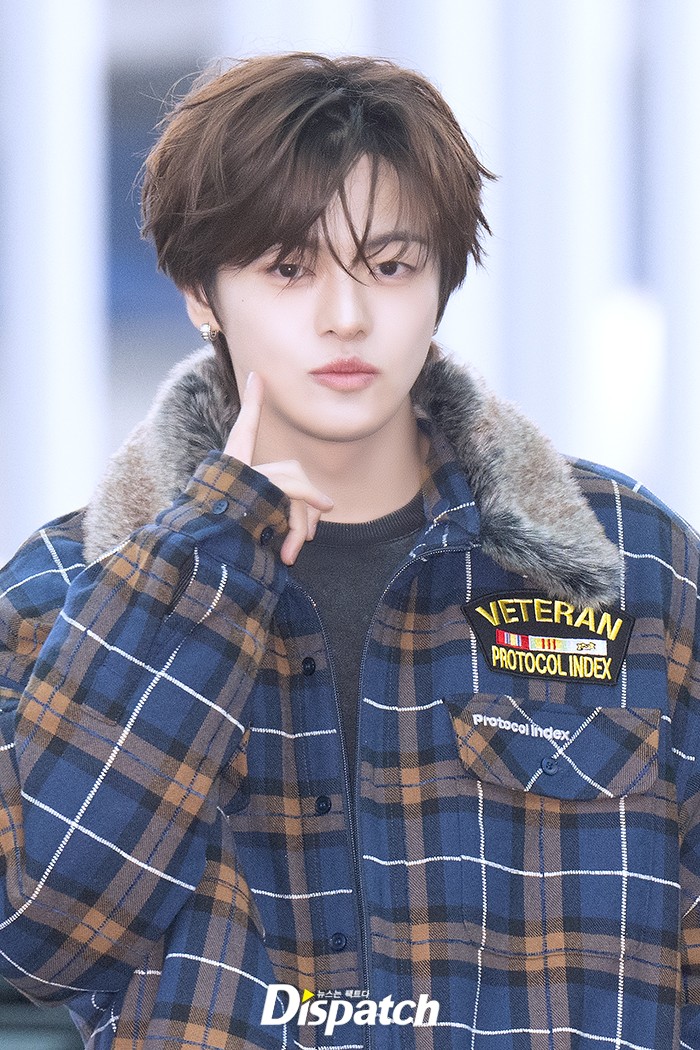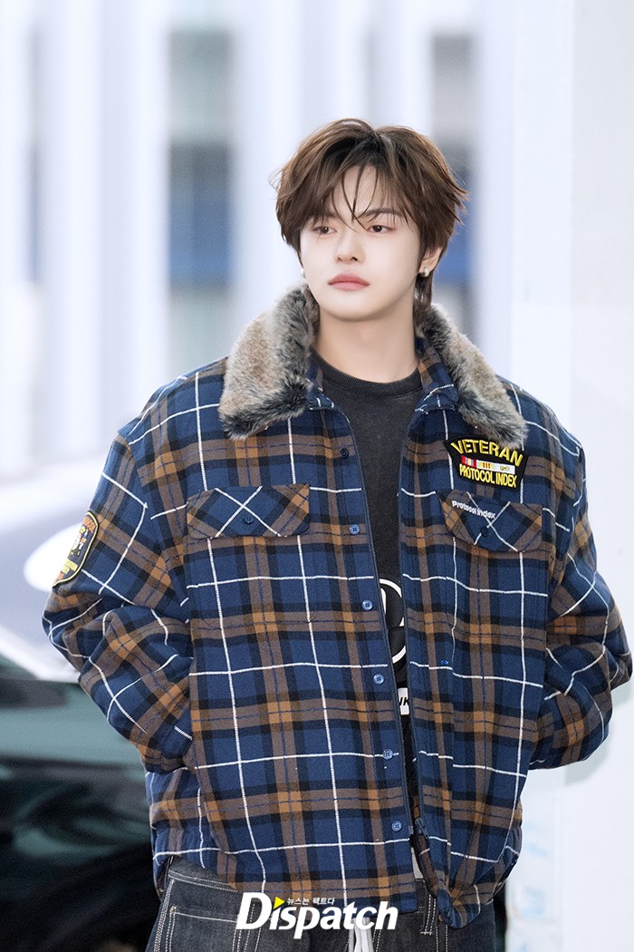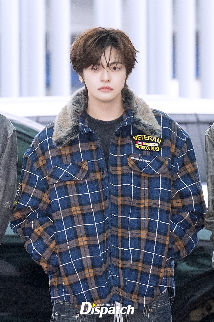 리오는 데님 팬츠에 체크 재킷으로 댄디한 공항패션을 연출했다. 조각같은 비주얼이 돋보였다.