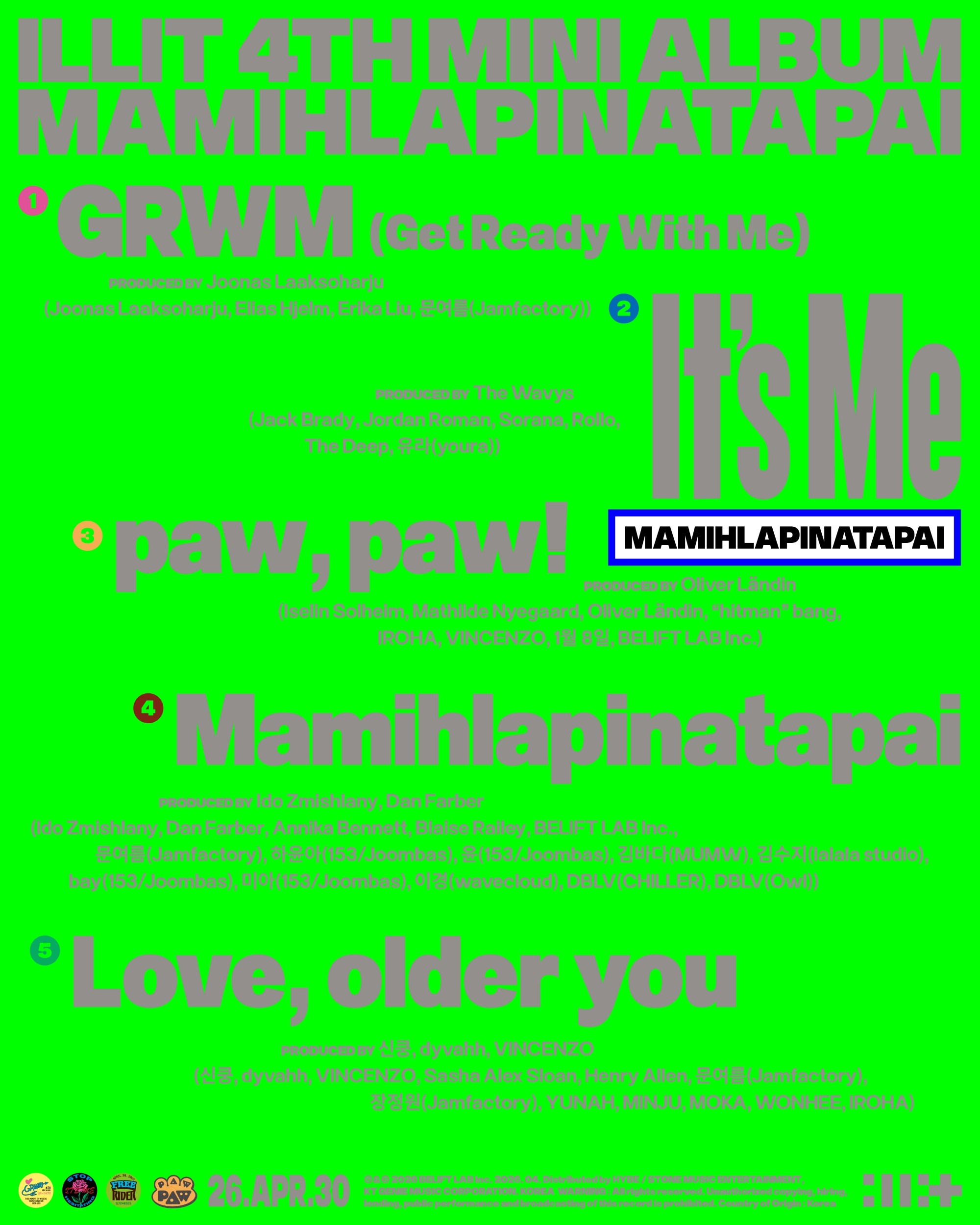 타이틀곡 '이츠 미'(It's Me)를 포함해 'GRWM'(갯 레디 위드 미), '파우, 파우!'(paw, paw!), '마밀라파나타파이', '러브, 올덜 유'(Love, older you) 등 총 5곡을 준비했다.
