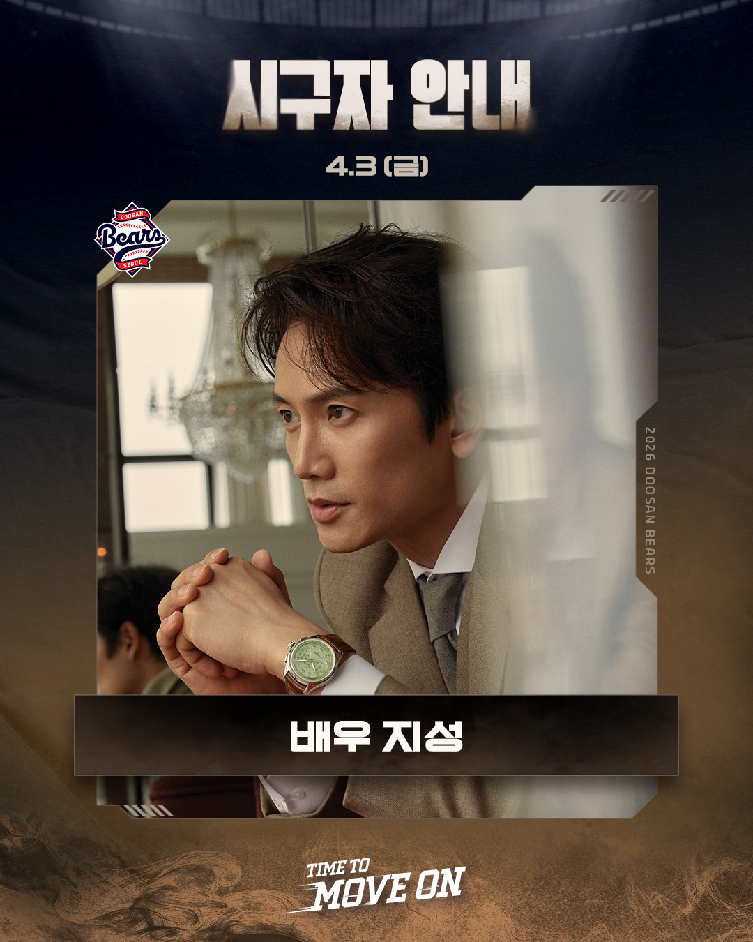 지성은 오는 3일 서울 송파구 잠실야구장에서 열리는 2026 신한SOL KBO리그 두산 베어스와 한화 이글스 경기에 시구자로 참석한다.