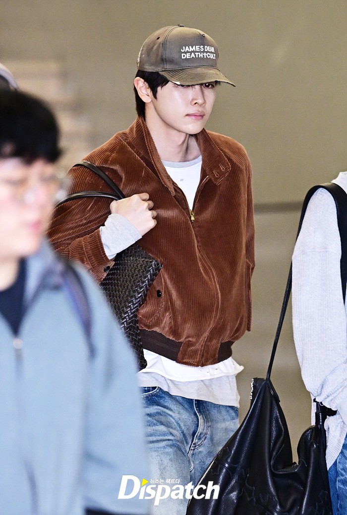 성찬은 브라운 컬러의 재킷과 데님진으로 캐주얼한 공항패션을 연출했다. 큰 키와 훈훈한 비주얼도 돋보였다.