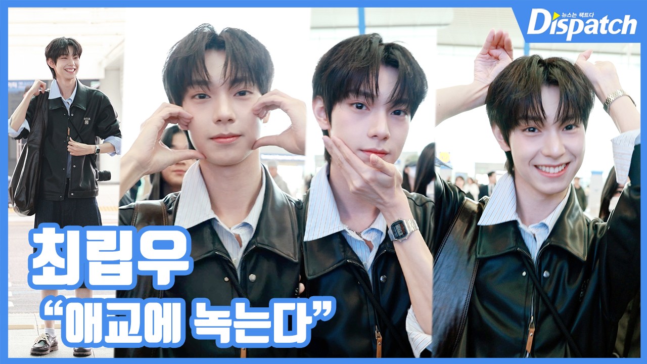이날 최립우는 셔츠, 버뮤다 팬츠에 레더 재킷을 매치해 소년미 넘치는 공항패션을 완성했다.