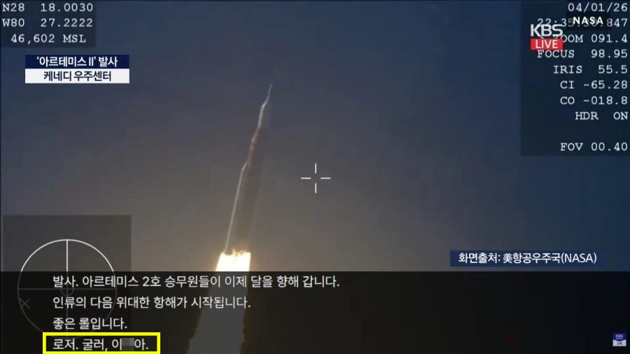 KBS는 지난 2일 유튜브 라이브 스트리밍을 통해 미국 항공우주국(NASA)의 '아르테미스 2호' 발사 과정을 중계했다. 해당 방송에는 AI 자동 번역 자막이 적용됐다.
