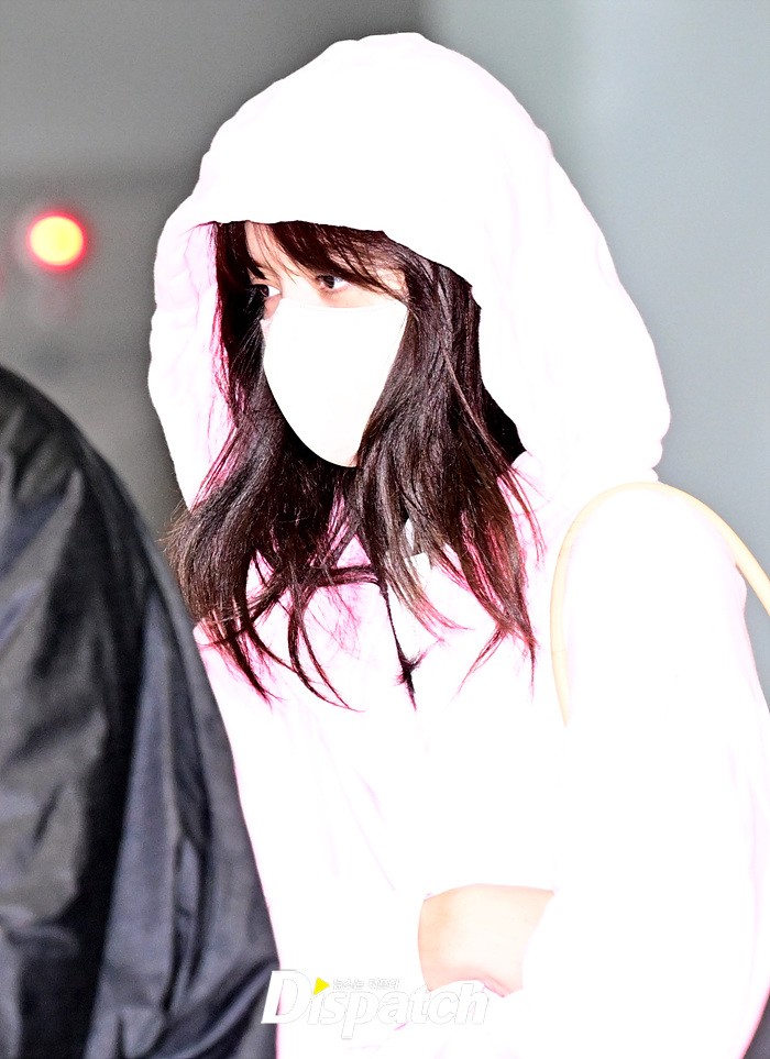 리사는 핑크 컬러의 후드집업과 마스크로 얼굴을 감쌌다. 민낯을 가린 채 서둘러 출국장을 나섰다.