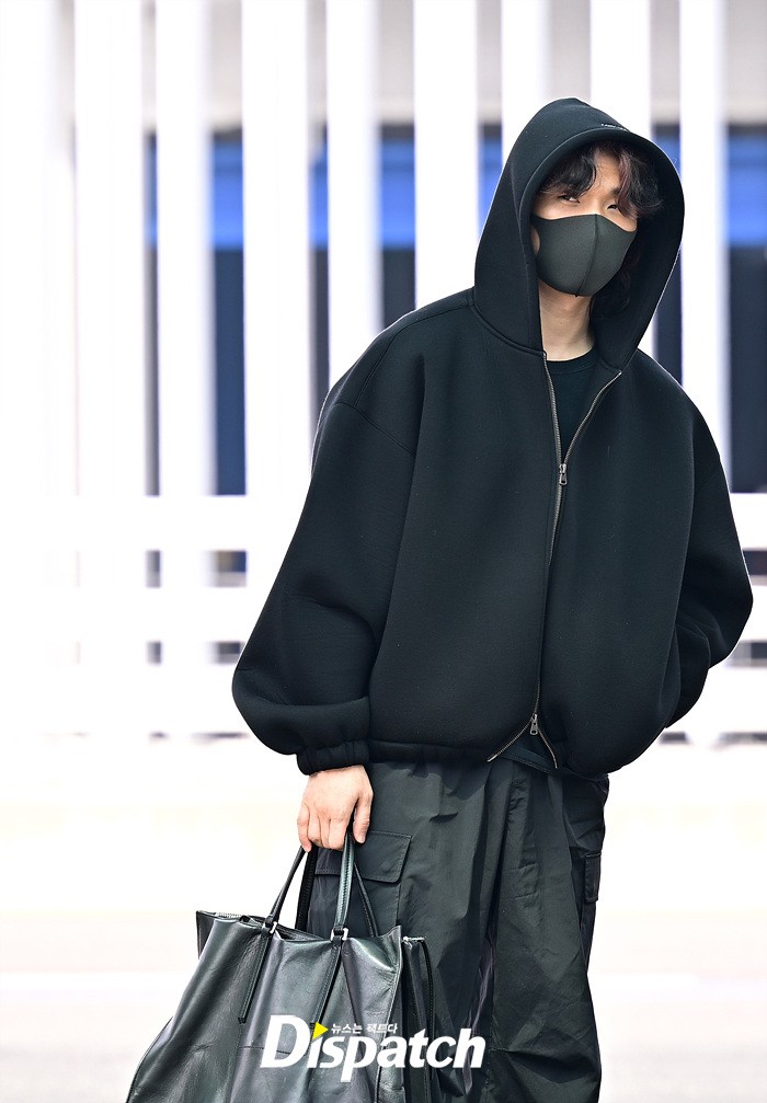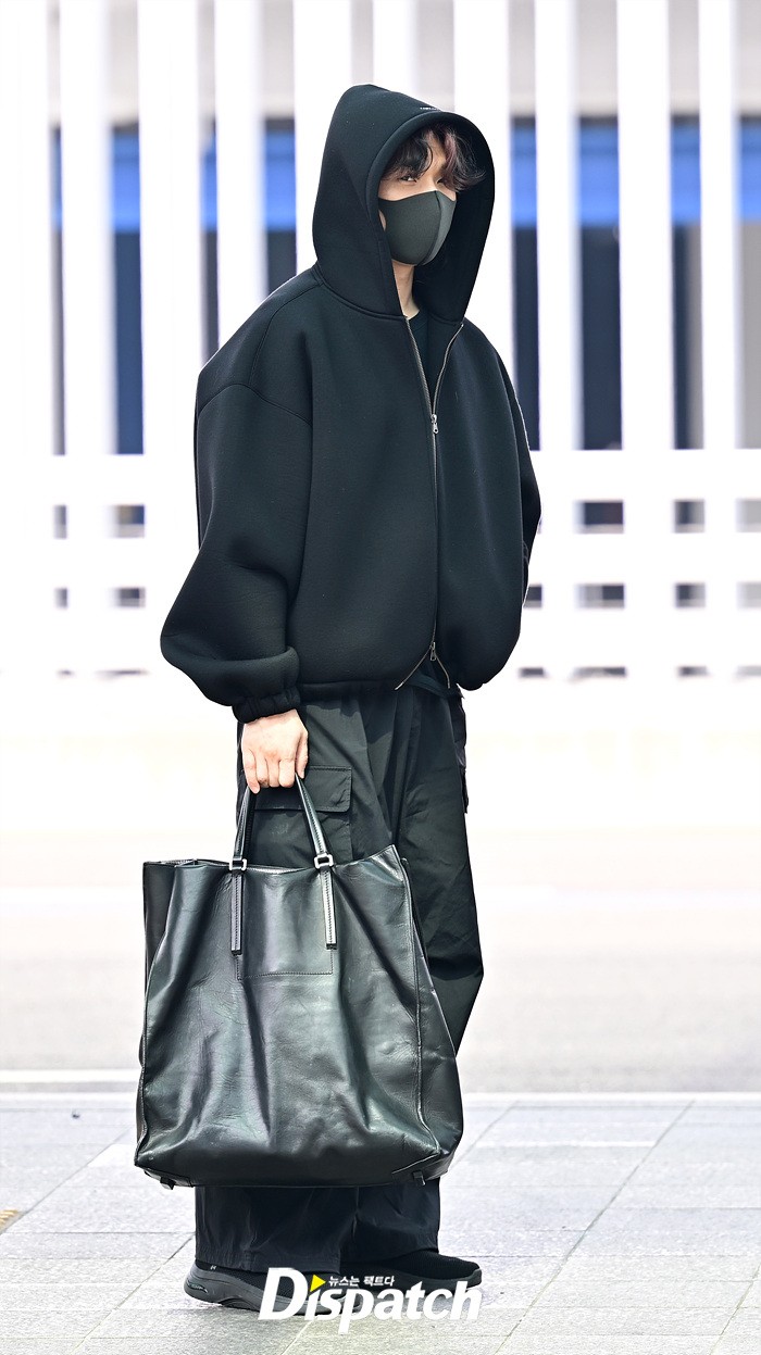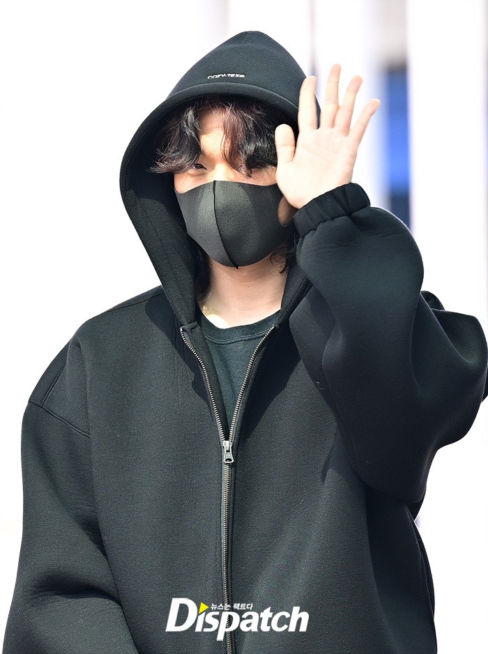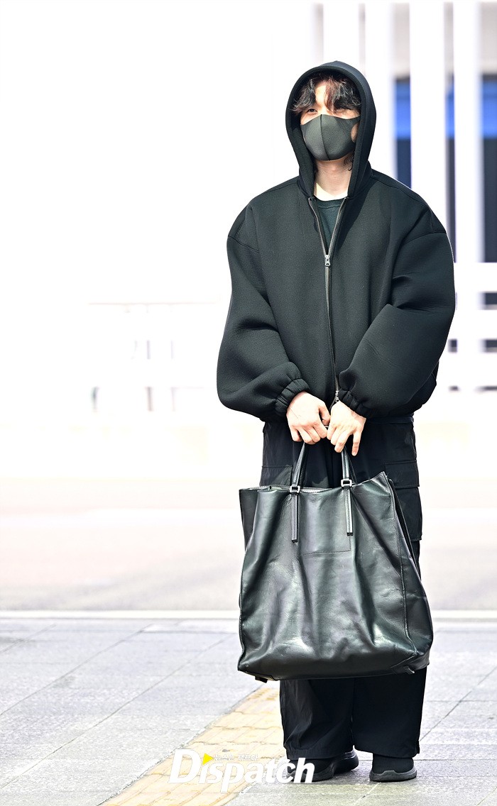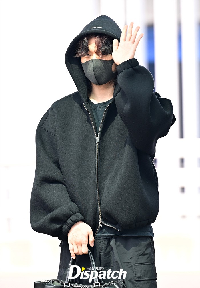 대성은 올블랙 스타일로 시크한 매력을 선보였다. 공항에 모인 팬들을 위해 환한 손인사로 화답했다.
