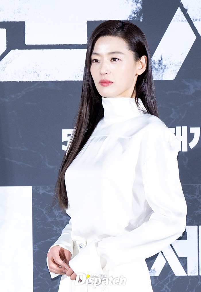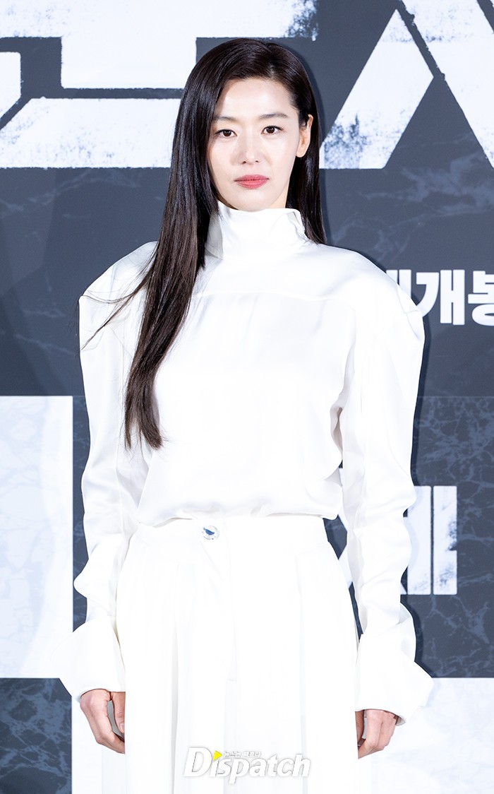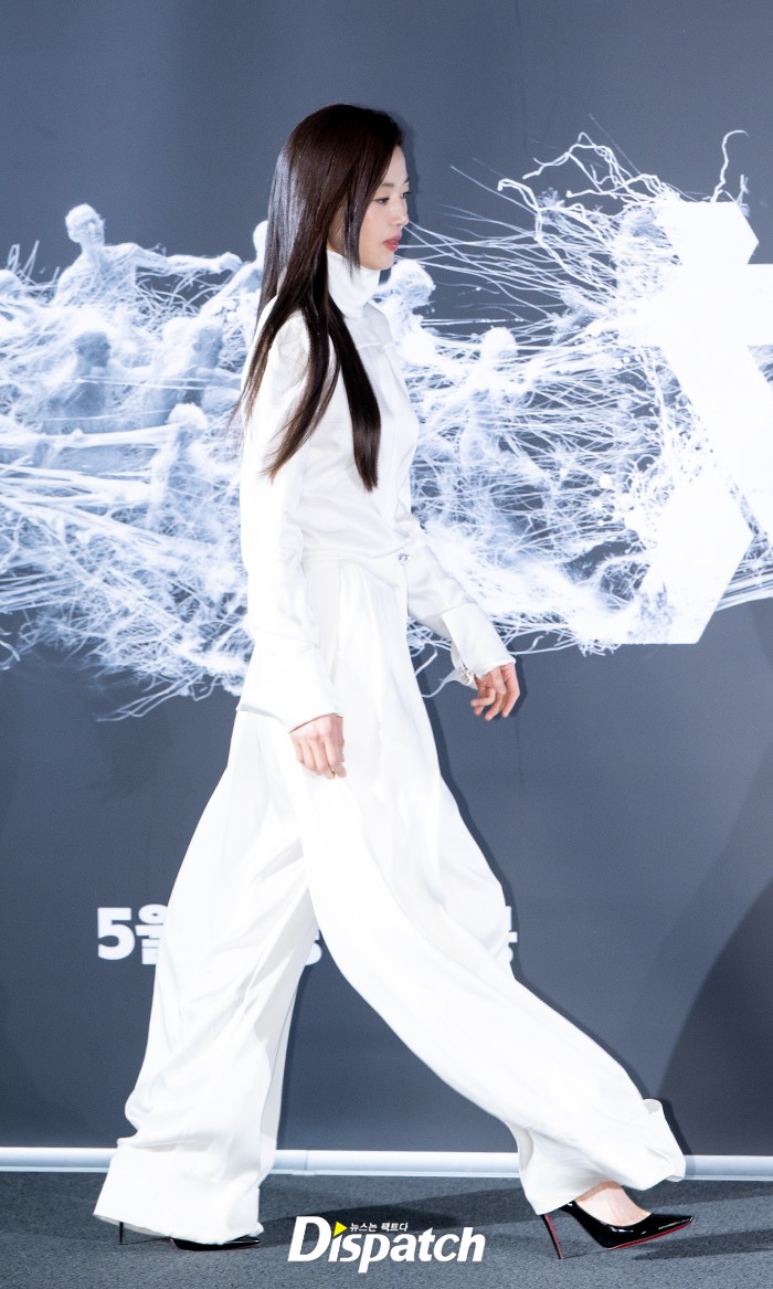 전지현은 올화이트 의상으로 화려한 맵시를 뽐냈다. 아름다운 미모로 시선을 사로잡았다.