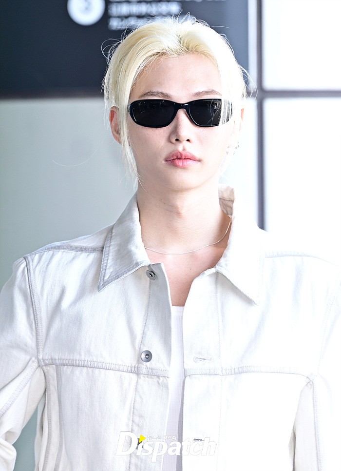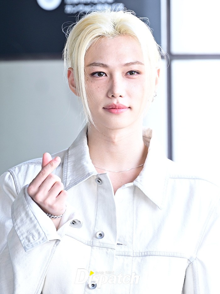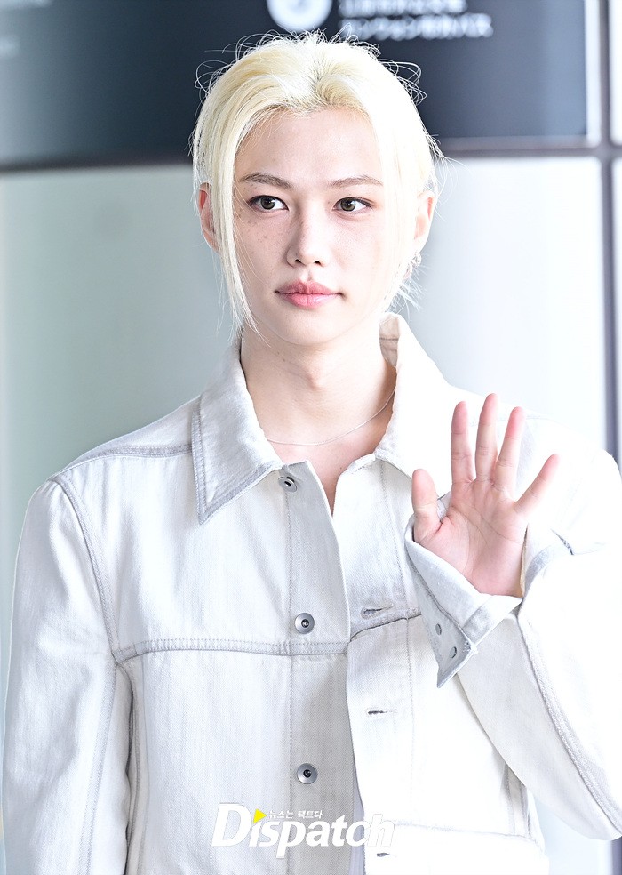 필릭스는 화이트 컬러의 재킷과 데님진으로 캐주얼한 공항패션을 연출했다. 순정만화 주인공을 연상케 하는 비주얼이 돋보였다.